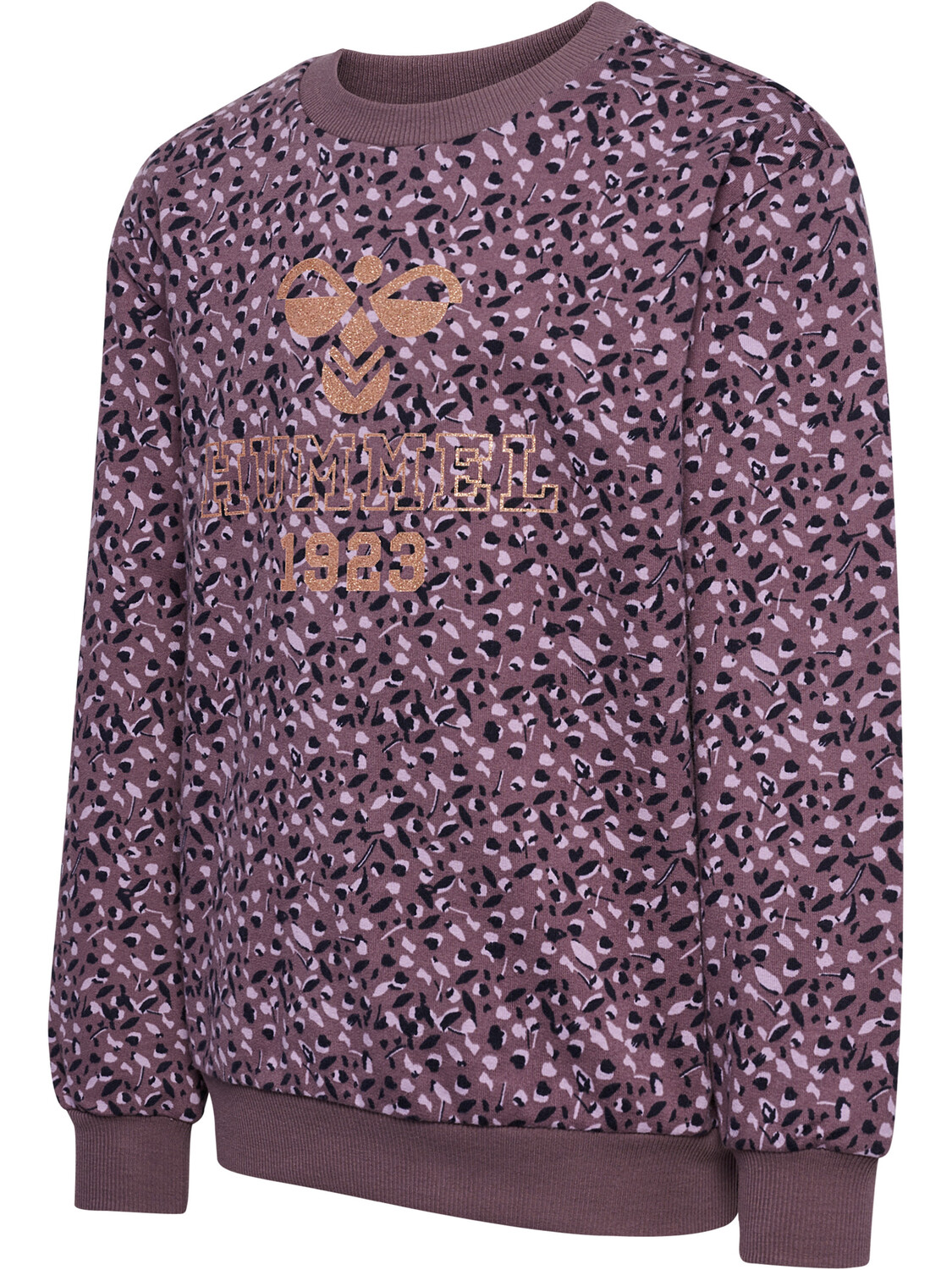 СВИТШОТ с круглым вырезом hmlANNIKA — мягкий и удобный выбор, который согреет малышей. Он изготовлен из приятной для кожи ткани с добавлением органического хлопка. Ребристая ткань на вырезе, подоле и манжетах обеспечивает дополнительный комфорт, а художественный узор со сверкающим принтом логотипа делает образ особенным.