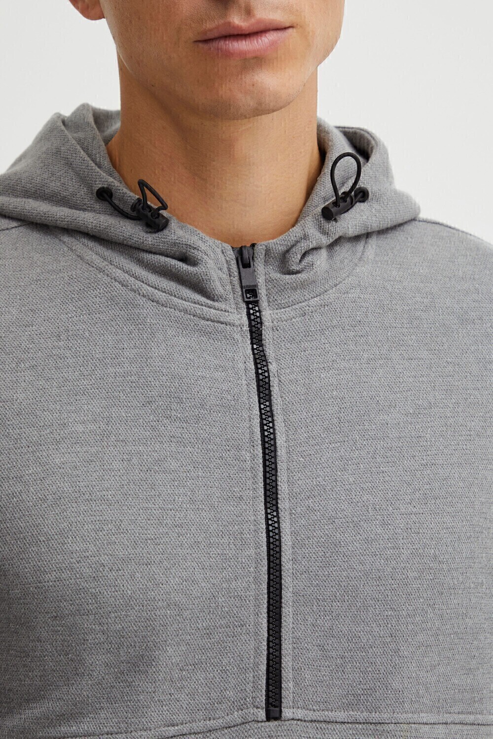 ДЕТАЛИ И ОСОБЕННОСТИ: Пуловер с капюшоном, застежка на пластиковую молнию, стандартный крой, резиновая нашивка, ребристый низ, обычные рукава с ребристыми манжетами, два боковых кармана, высококачественный хлопковый материал, молния с покрытием на воротнике, декоративные разделительные швы с встроенные карманы, шнуры на капюшоне, эластичная лента с фиксаторами
