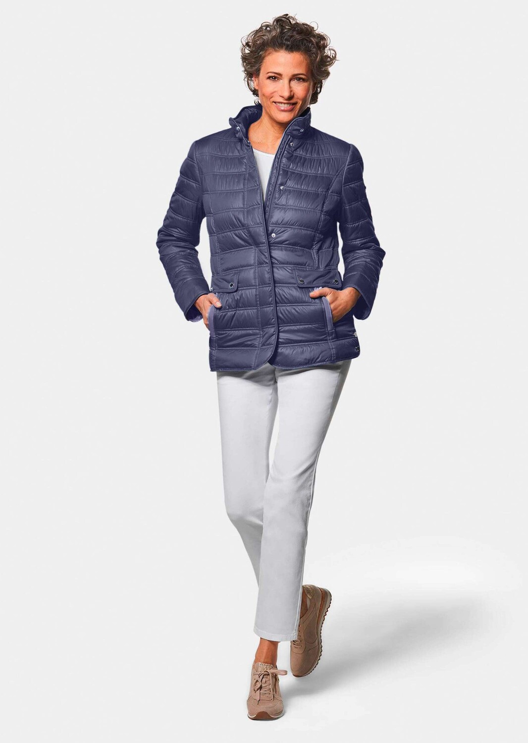 Стеганая куртка, которая легко будет сопровождать вас на прогулке, в городе или в путешествии. Красивая классическая модель имеет приятный вес и эффектный двойной шов. Капюшон удобно спрятан в воротнике-стойке, а молния прикрыта планкой на кнопке. Это обеспечивает защиту от ветра и непогоды. Благодаря венским швам посадка идеальна. Ширину нижнего края можно быстро отрегулировать с помощью кнопок сбоку. Два боковых кармана отделаны красивой репсовой лентой и клапаном. Длина около 71 см по размеру. 46, размер около 67 см. 23.