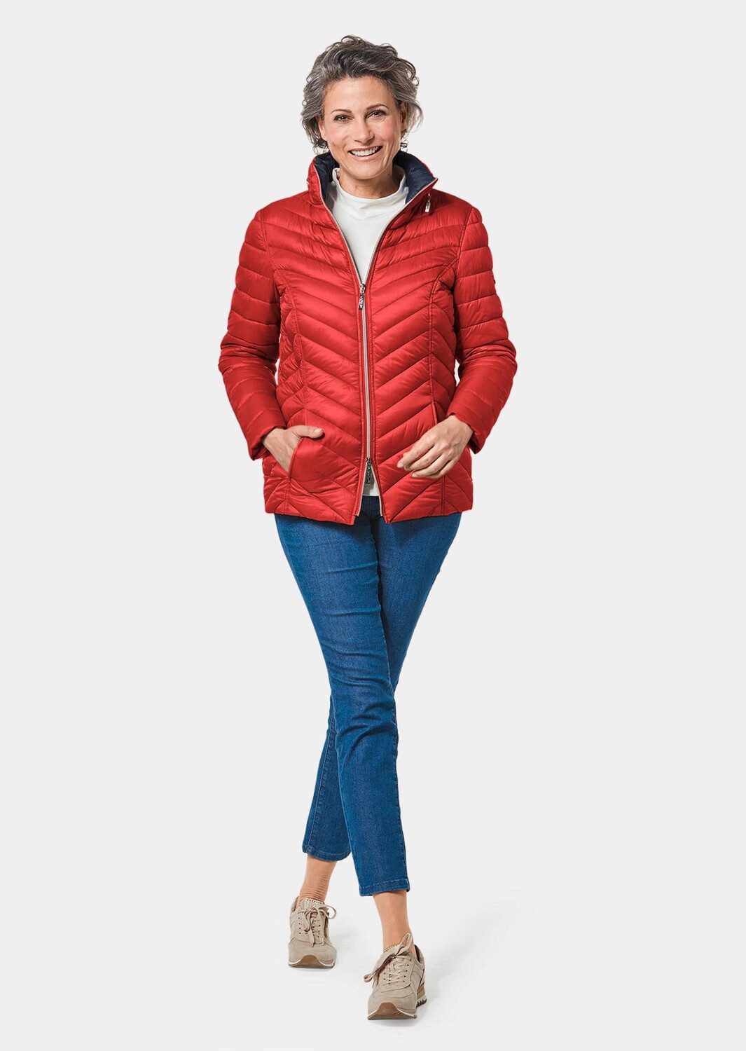 Стеганая куртка с модной диагональной стежкой: подчеркивает фигуру, но не громоздка. Сверхлегкий и устойчивый к морщинам, как настоящий пух. Элегантная двусторонняя молния, венский шов, мягкие рукава и боковые карманы. Капюшон можно спрятать в воротник. Длина около 71 см/размер 86 см. 46, размер около 67 см/82 см. 23.