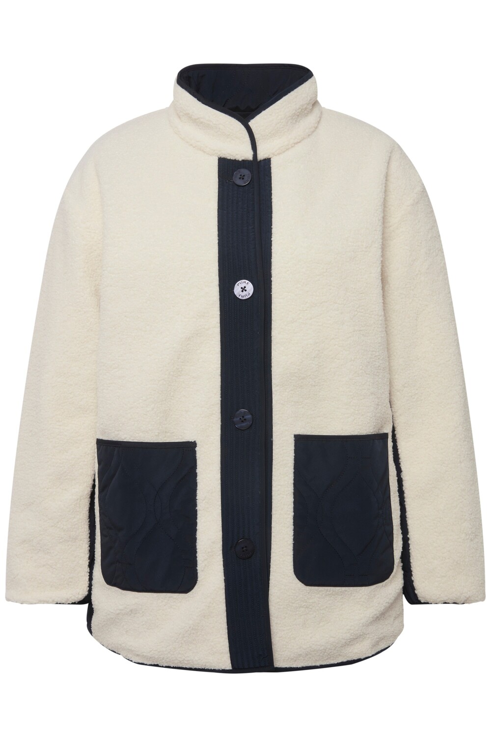 Двусторонняя куртка из переработанного полиэстера. Современная, теплая двусторонняя куртка, удобного прямого кроя, с 2 красивыми сторонами: 1 сторона стеганая, 1 сторона из мягкого флиса Тедди. Воротник стойка, планка на пуговицах, 2 накладных кармана. Длинные рукава с эластичными манжетами.