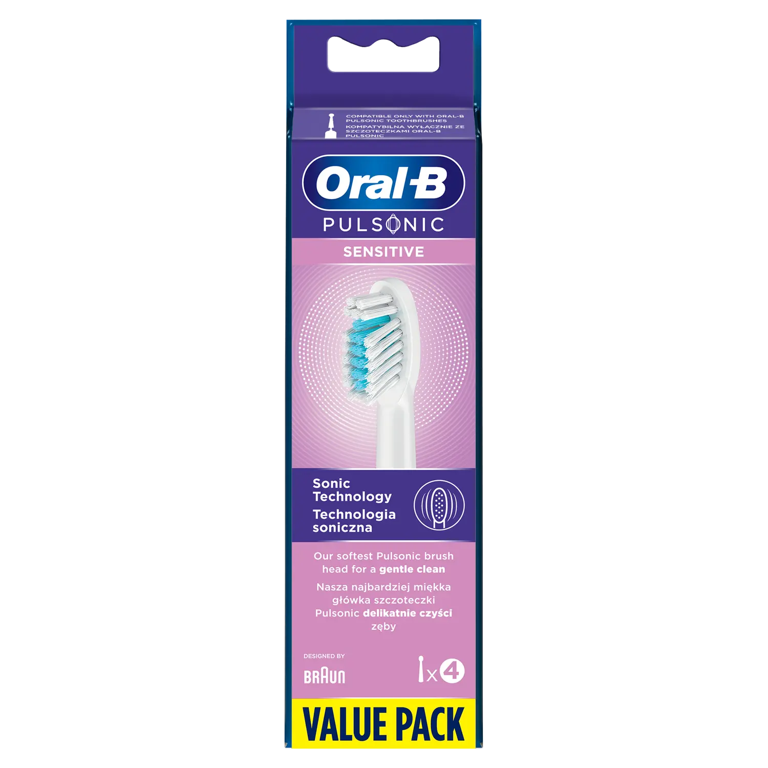Попробуйте нашу самую мягкую насадку Pulsonic для бережной очистки. Удлиненная насадка щетки Pulsonic Sensitive удаляет больше налета, чем традиционная мануальная зубная щетка, благодаря технологии мягкого звука. Он также совместим со всеми звуковыми зубными щетками Oral-B Pulsonic.
