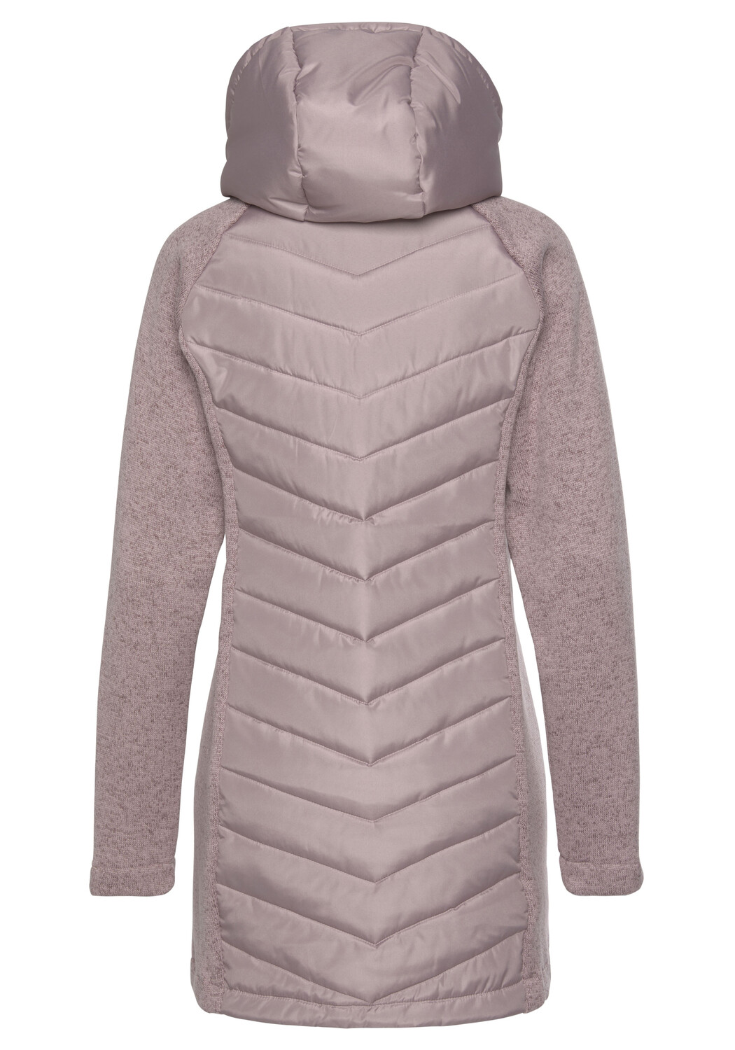 Уличная стеганая куртка от Vivance. Регулируемый капюшон. Со встроенным шнурком и практичными стопорами для шнура. Боковые карманы на молнии. Молния во всю длину. Узкий, прямой крой. Идеальное сочетание материалов: теплая стеганая ткань из 100% полиэстера и уютный вязаный флис из 100% полиэстера.