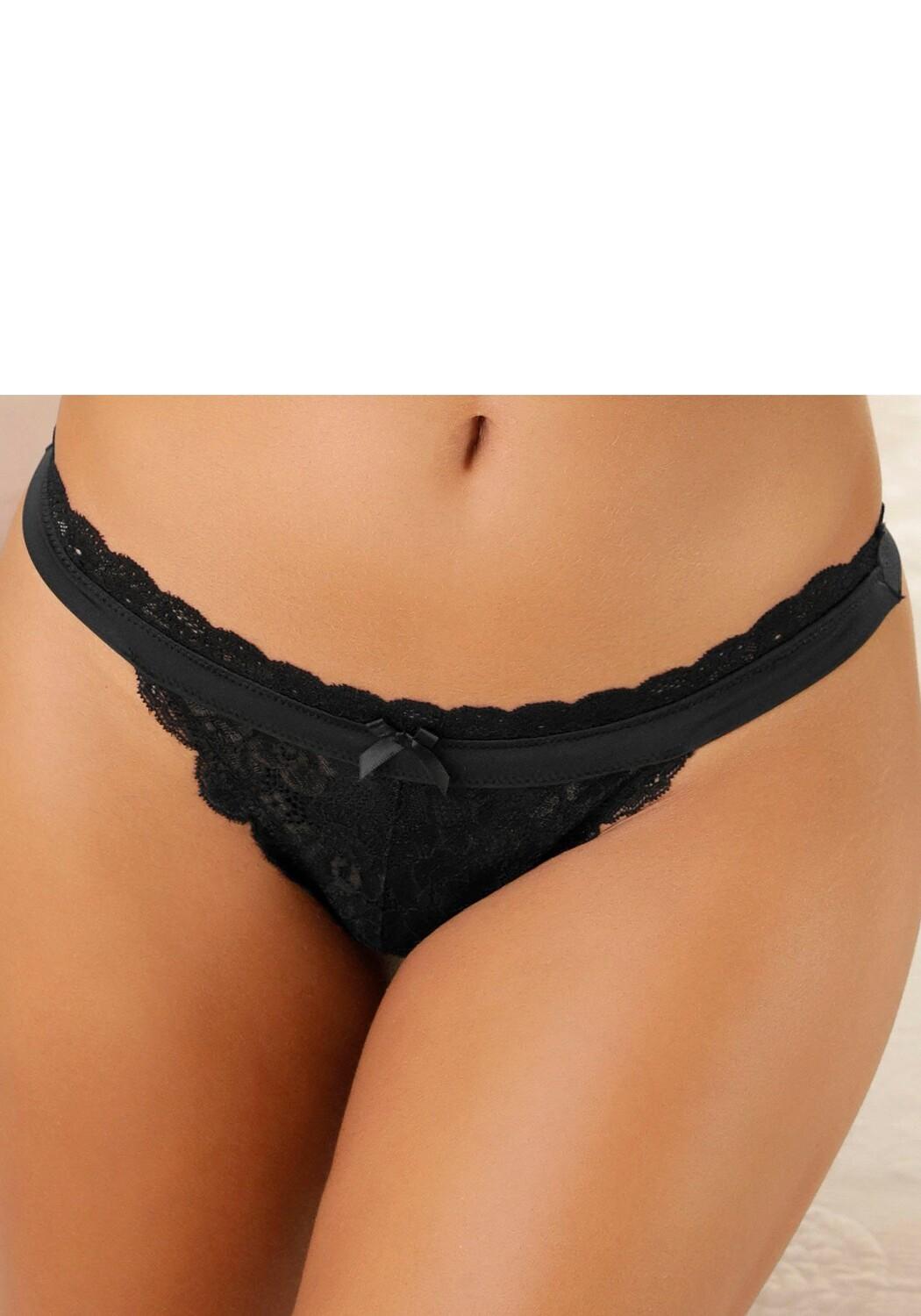 Женственные стринги с широким поясом и кружевным краем. Все вокруг из тонкого цветочного кружева. В центре спереди изящный декоративный бантик. Со встроенной хлопковой ластовицей. Изготовлен из 90 % полиамида, 10 % эластана.