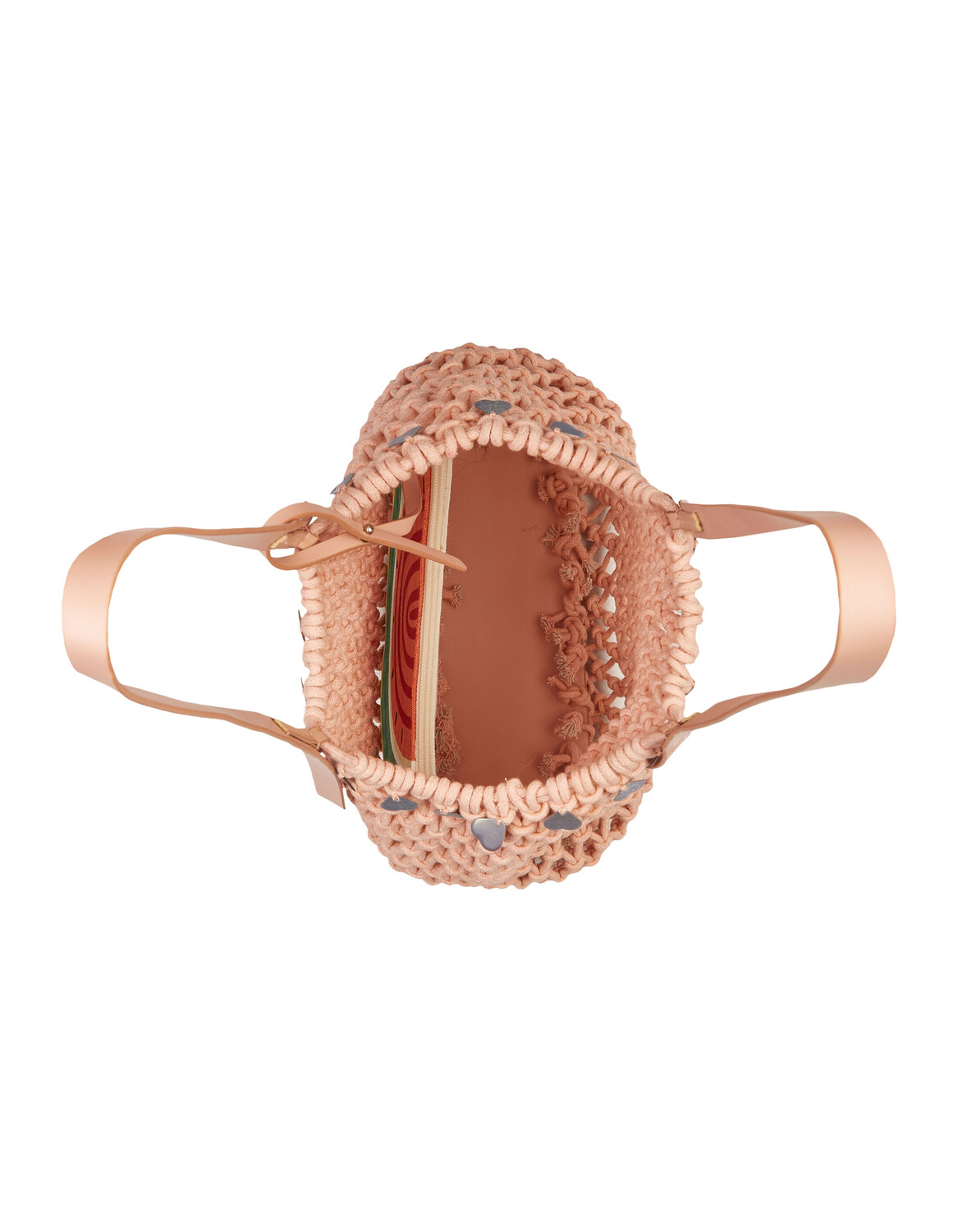 Эта сетчатая сумка, связанная крючком, станет настоящим украшением лета. Съемный внутренний карман в форме фруктового арбуза вмещает ключи, кошелек и мобильный телефон.