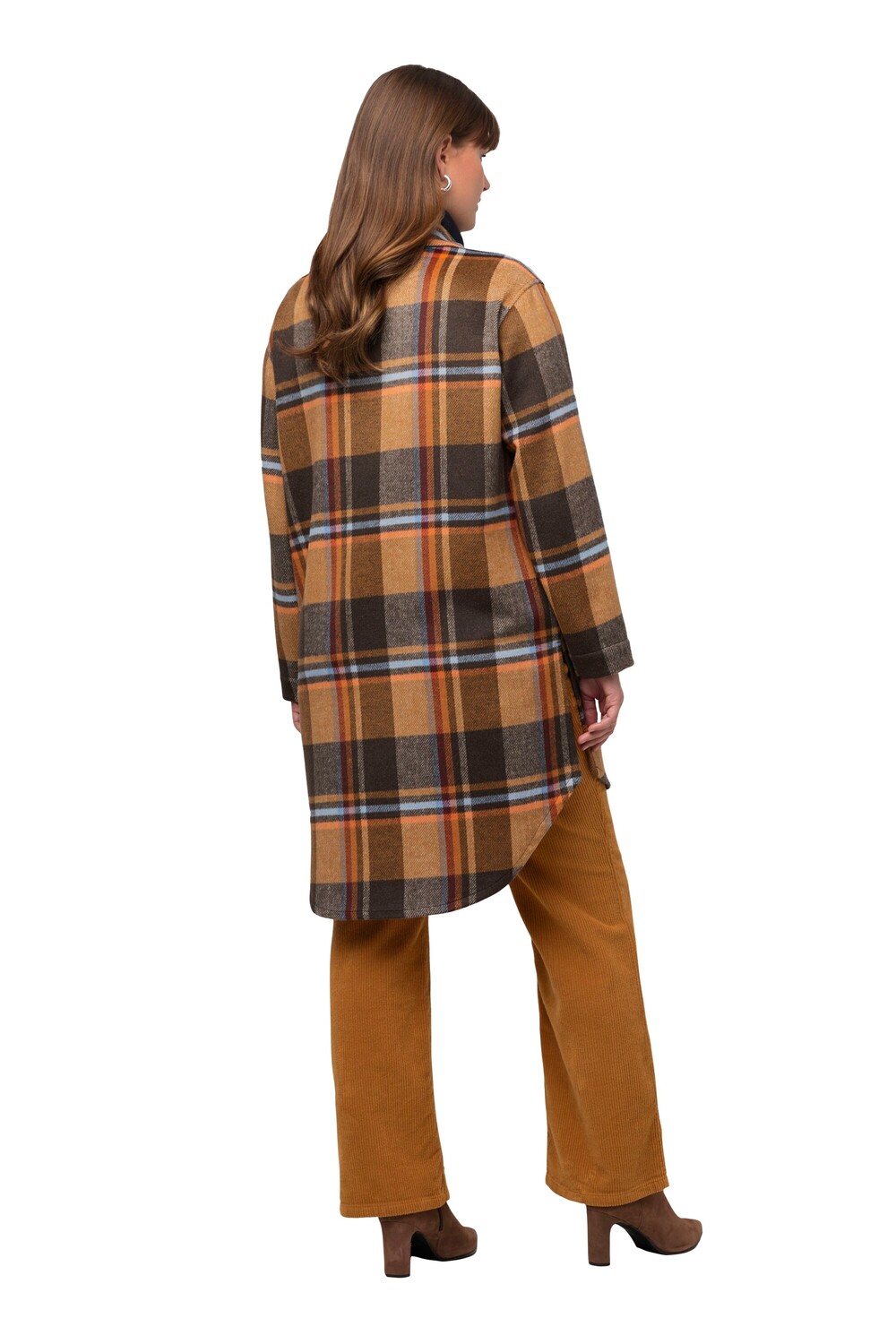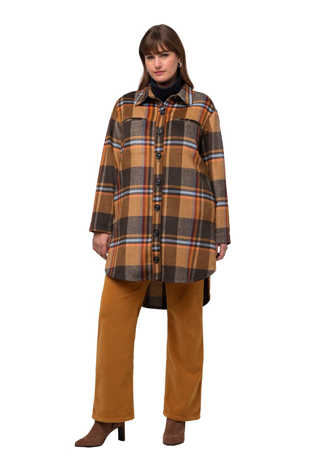 Рубашка длинного кроя оверсайз. Шакет из мягкой фланели – современное сочетание рубашки и жакета, универсальное, молодежное, практичное. Воротник рубашки, заниженная линия плеча, 2 нагрудных кармана и 2 кармана в боковых швах. Длинный рукав. Закругленный низ с разрезами по бокам, сзади примерно на 8 см длиннее.
