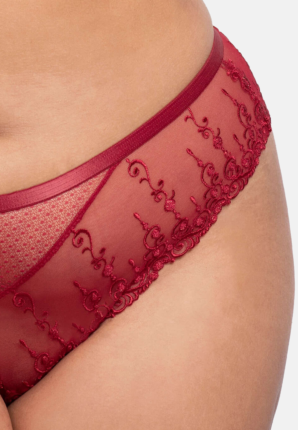 Стринги Exclusive Line соблазняют игривым использованием лент и большого количества кружева. Элегантная швейцарская вышивка с орнаментом и эффектом блесток делает стринги настоящим украшением.