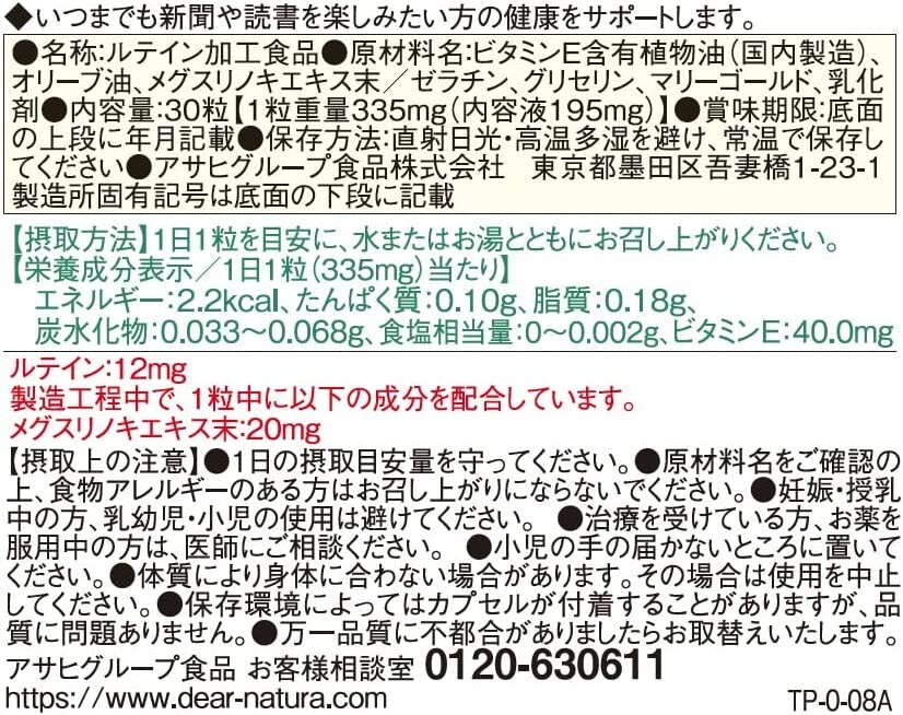 ASAHI Dear-Natura lutein – витамин с лютеином, который улучшает зрение и сохраняет его остроту, предотвращает ухудшение зрения с возрастом, обеспечивает оптимальное функционирование желтого пятна, поддерживает здоровье глаз, а также улучшает работу мозга.