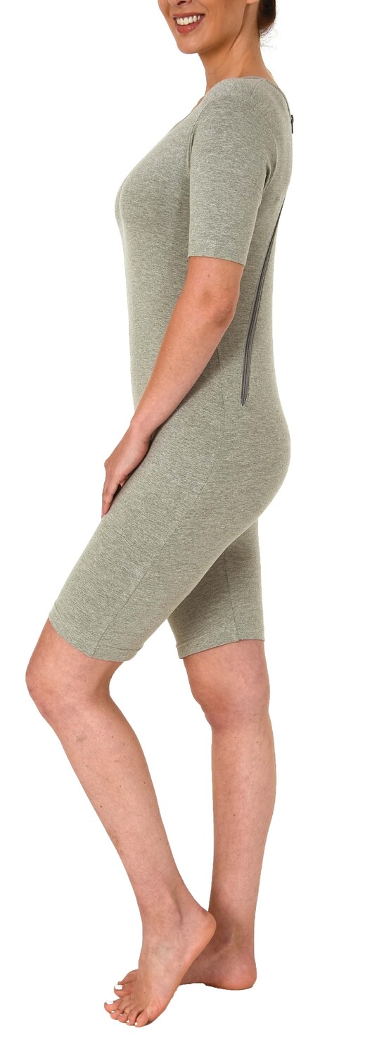 Материал этого комбинезона в основном изготовлен из хлопка и поэтому очень удобен для ношения на коже. Благодаря своему внешнему виду это боди для ухода сочетает в себе нижнюю рубашку и фиксирующие штаны. Во время ухода упрощается гигиеническая смена средств, используемых при недержании, поскольку полное раздевание не требуется.