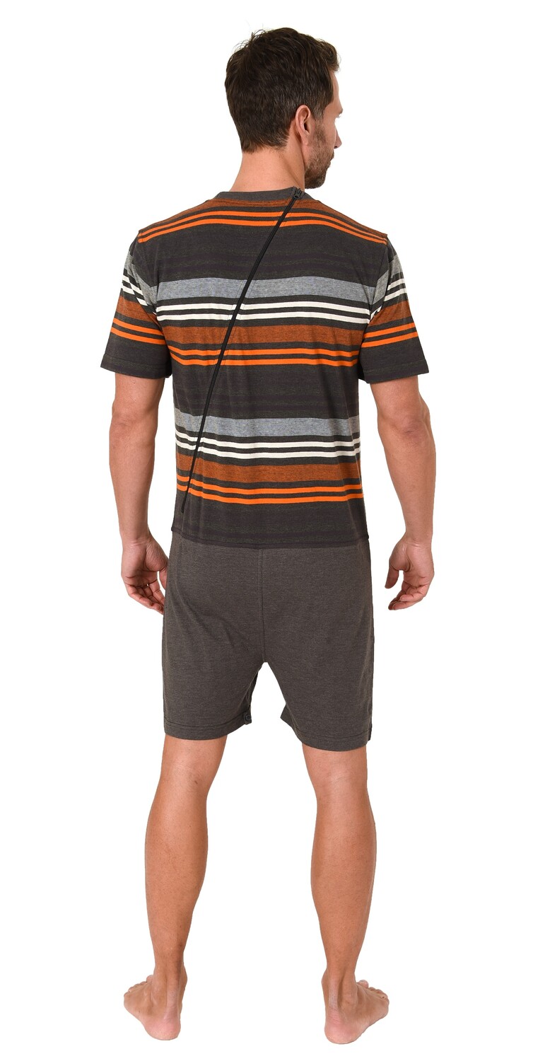 Мужской комбинезон для кормления с короткими рукавами, короткими брючинами и практичной молнией сзади. Диагональная задняя молния делает одевание и раздевание намного проще и приятнее для пострадавшего.