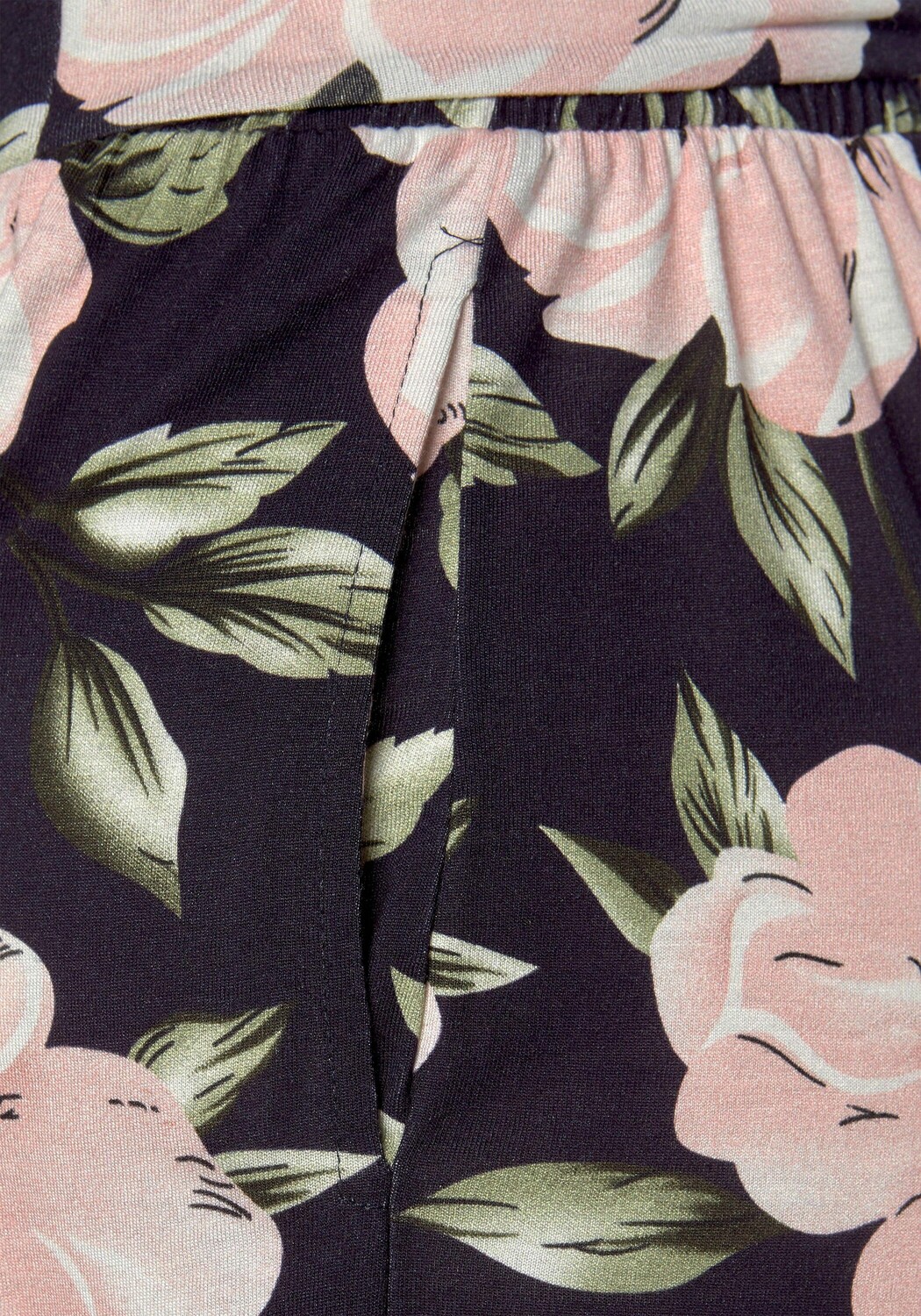 Шорты от s.Oliver широкого кроя с принтом по всей поверхности. Эластичный пояс, гладкая передняя часть с прочными завязками. Боковые карманы. Длина внутренней ножки около 12 см. Изготовлен из 100% вискозы.