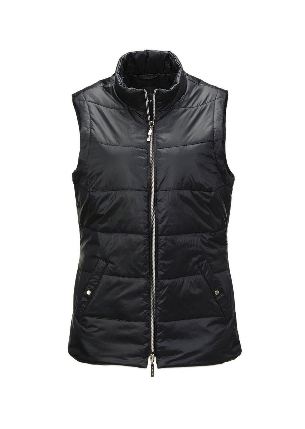 Стеганый жилет с легким блеском станет подходящим дополнением для любого досуга. Легкая и теплая, она богата деталями, имеет двустороннюю молнию, боковые карманы с декоративными заклепками, воротник-стойку и прошитые крестиком швы. Размер в длину около 69 см. 46, размер около 65 см. 23.