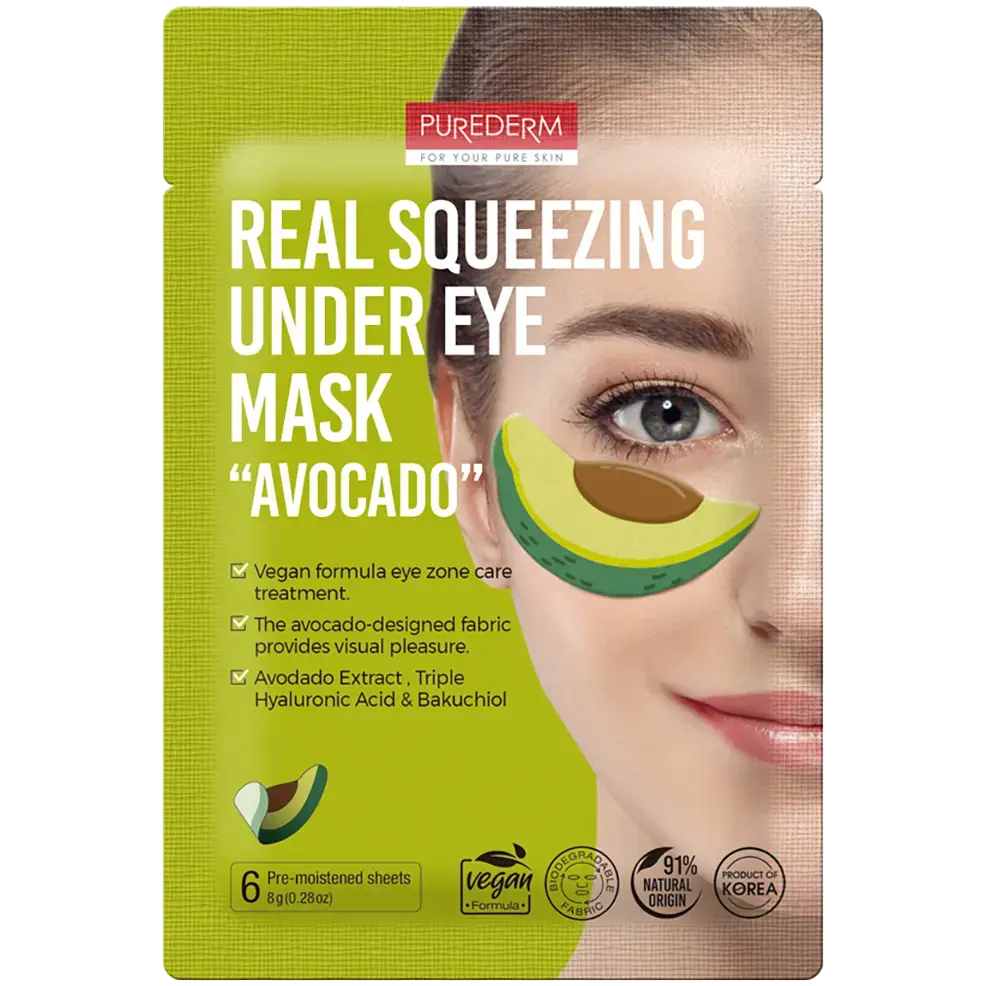 PUREDERM 'Avocado' Веганские биоразлагаемые подушечки для глаз Они также содержат гиалуроновую кислоту, ниацинамид, бакучиол и кофеин, которые обеспечивают глубокое питание и увлажнение, выражают осветление и упругость кожи вокруг глаз. Ткань маски изготовлена из биоразлагаемого материала и состоит из 100% синтетического шелка, что делает ее нежной к коже и безопасной для окружающей среды. PUREDERM Real Squeezing Under Eye Mask AVOCADO веганские и биоразлагаемые подушечки для глаз содержат: гиалуроновую кислоту - вещество, которое естественным образом встречается в организме человека в форме натриевой соли (гиалуронат натрия). В наибольшей концентрации он присутствует в коже, в синовиальной жидкости и в стекловидном теле глаза. Гиалуроновая кислота также является компонентом жидкостей организма и соединительной ткани. Это также строительный блок стенок кровеносных сосудов. Интенсивно увлажняет, обеспечивает надлежащее увлажнение. ниацинамид – обладает увлажняющими свойствами – регулируя процессы обновления эпидермиса, уменьшает потерю воды через кожу, что делает ее более увлажненной и эластичной. Он также обладает антивозрастным и антивозрастным действием. Осветляет кожу и придает ей однородный цвет. бакучиол – стимулирует обновление клеток кожи, разглаживает тонкие линии и морщины, улучшает тонус и текстуру кожи. Это также антиоксидант, что означает, что он может обеспечить некоторую защиту от разрушительного воздействия свободных радикалов. кофеин – ингредиент с дренирующими свойствами. Сильно стимулирует микроциркуляцию кожи, благодаря чему хорошо воздействует на дряблую кожу. Он поддерживает ее регенерацию, уменьшает отек и устраняет морщины. экстракт авокадо - обладает увлажняющим и питательным действием, успокаивает раздражения, регенерирует и разглаживает поврежденную кожу, оказывает защитное действие, укрепляя липидный барьер от вредных факторов, например, солнца, аллергенов и токсинов. Обладает укрепляющими и разглаживающими свойствами, обладает антиоксидантными свойствами. Рекомендуется для зрелой, сухой и чувствительной кожи.
