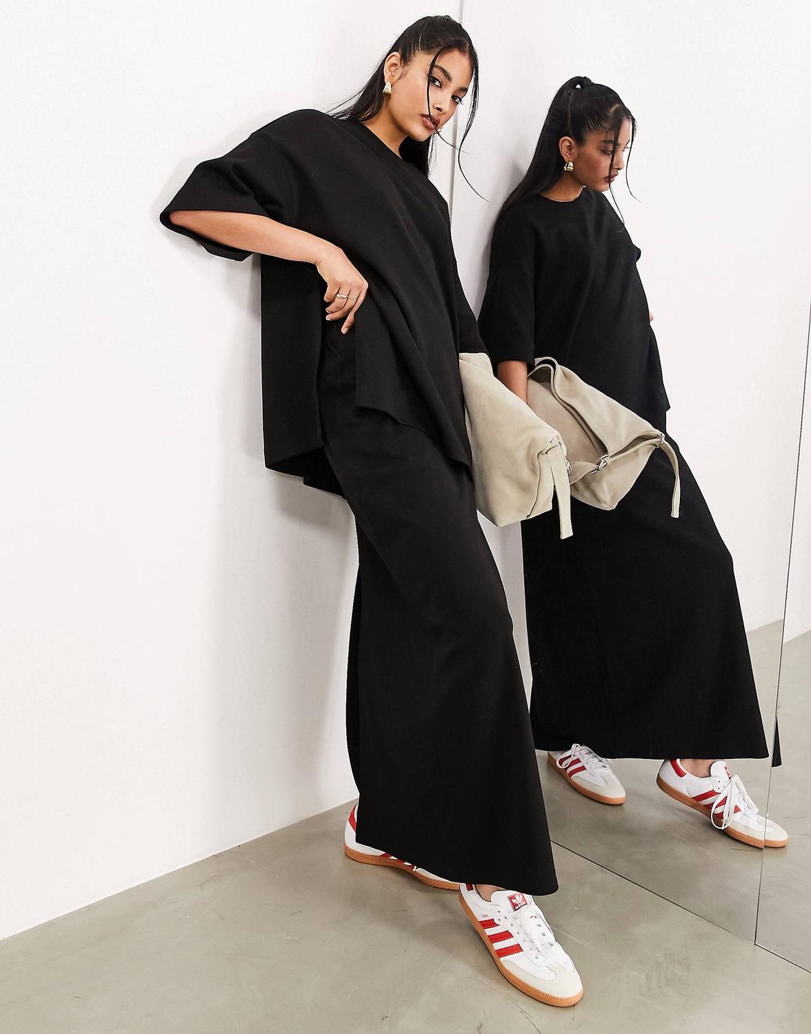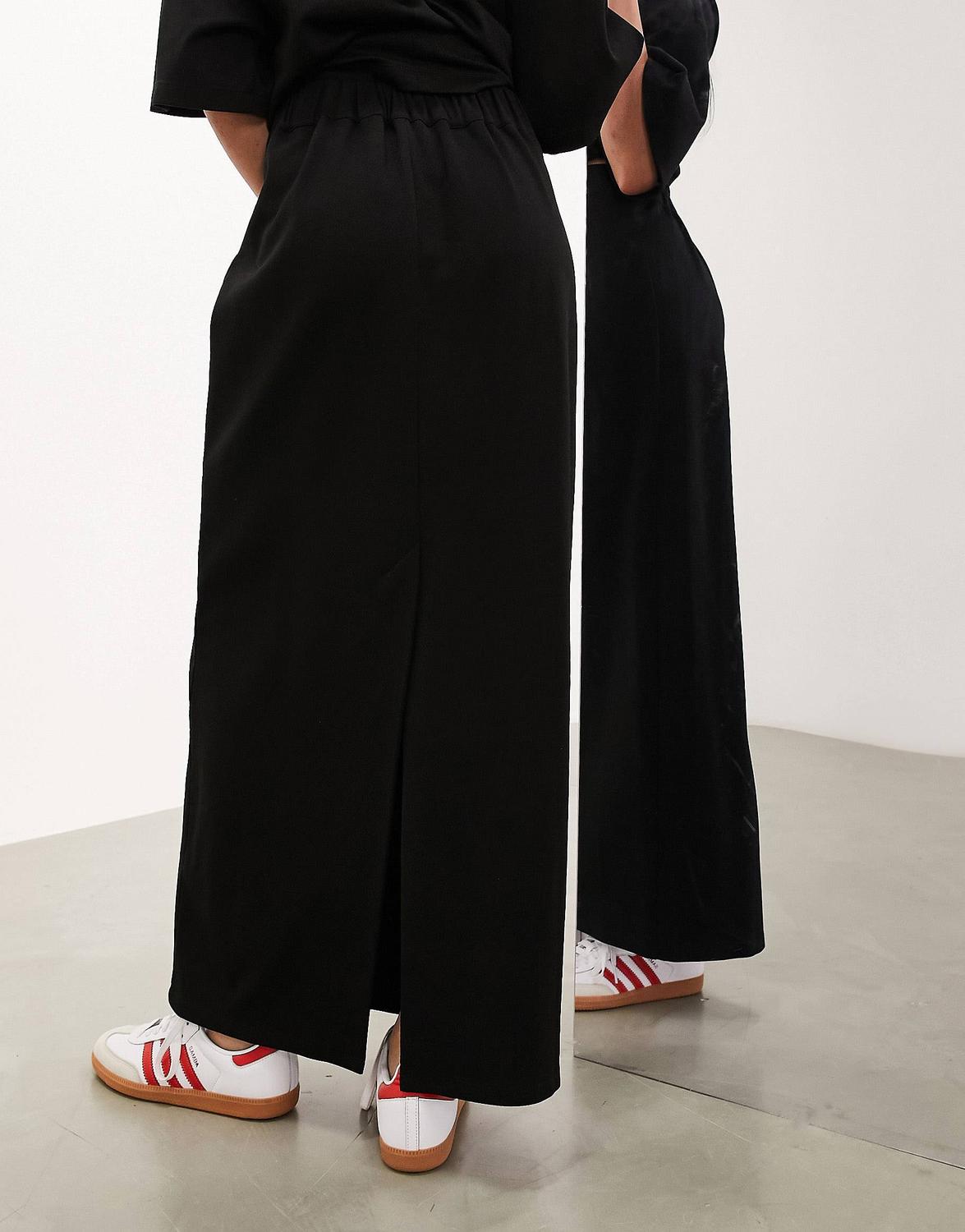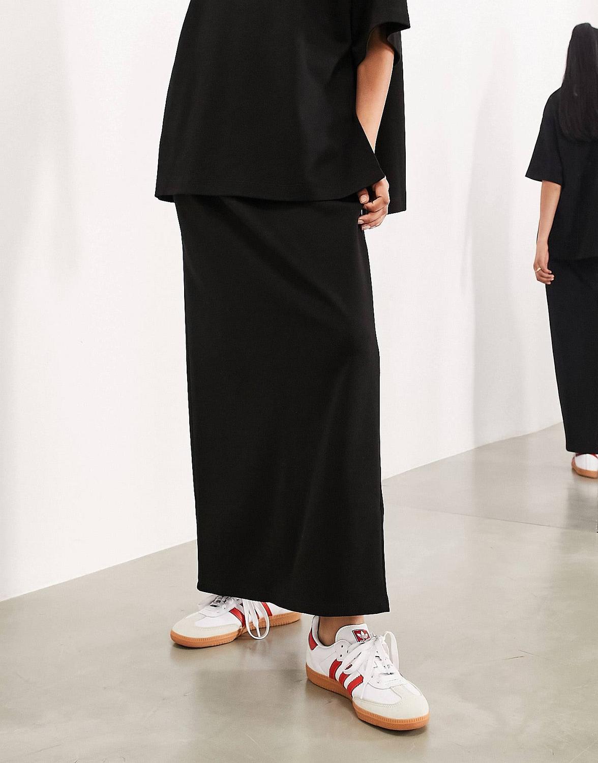 Черная юбка макси из плотного фактурного джерси.