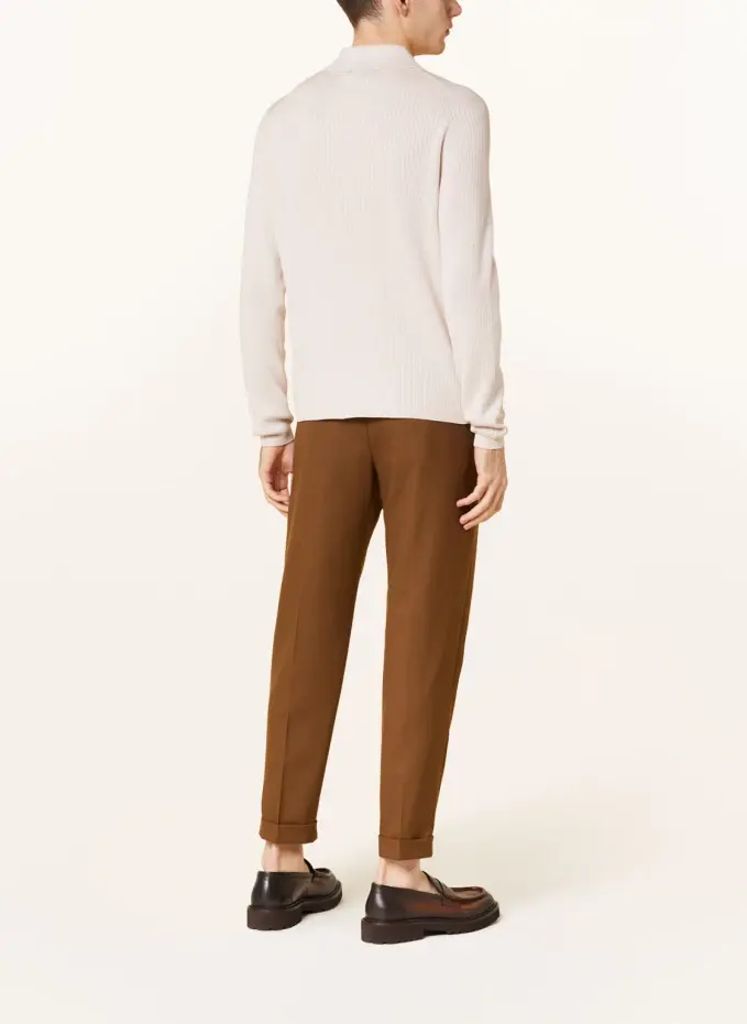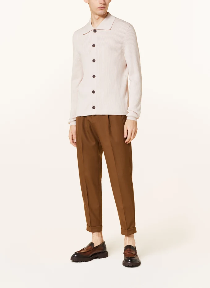 Реберная вязка. Прямого покроя. Отложной воротник. Закрывается на кнопки. Перерез плеч. Ребристые манжеты и подол. Смешанный хлопок