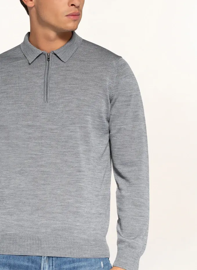 Чулки трикотажные. Прямого покроя. Перерез плеч. Воротник отложной на укороченной молнии. Ребристые манжеты и подол. Чистая шерсть
