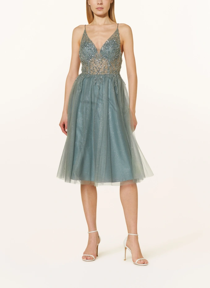 Коктейльное платье с пайетками и бисером Unique, зеленый