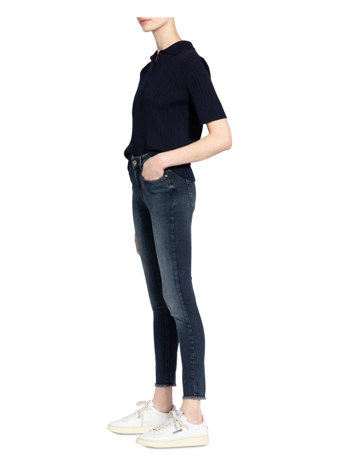 Посадка по данным производителя: Skinny Fit. Нормальная высота талии. Узкая, укороченная ножка. Застежка-молния. 5-карманный стиль. Тонкая бахрома на манжетах ног. Этикетка на поясе.