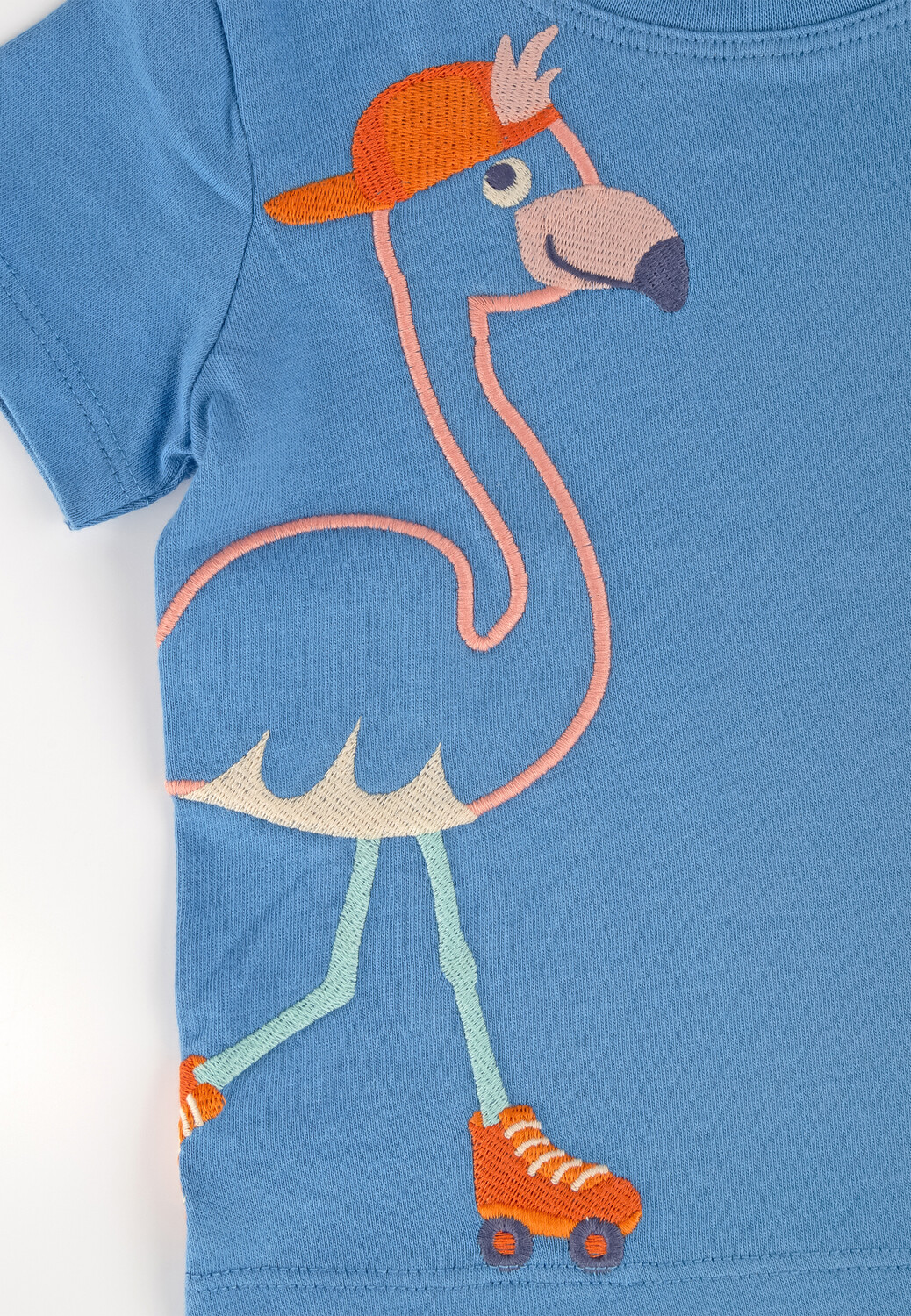 Лазурно-синяя детская футболка Flamingo, коллекция sigikid baby весна/лето 2024