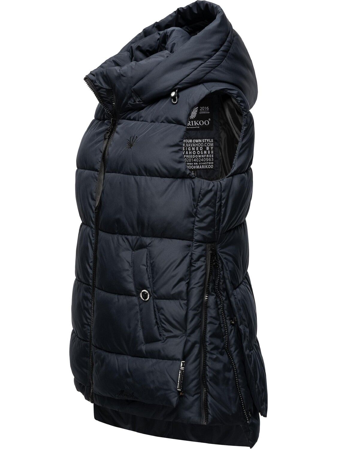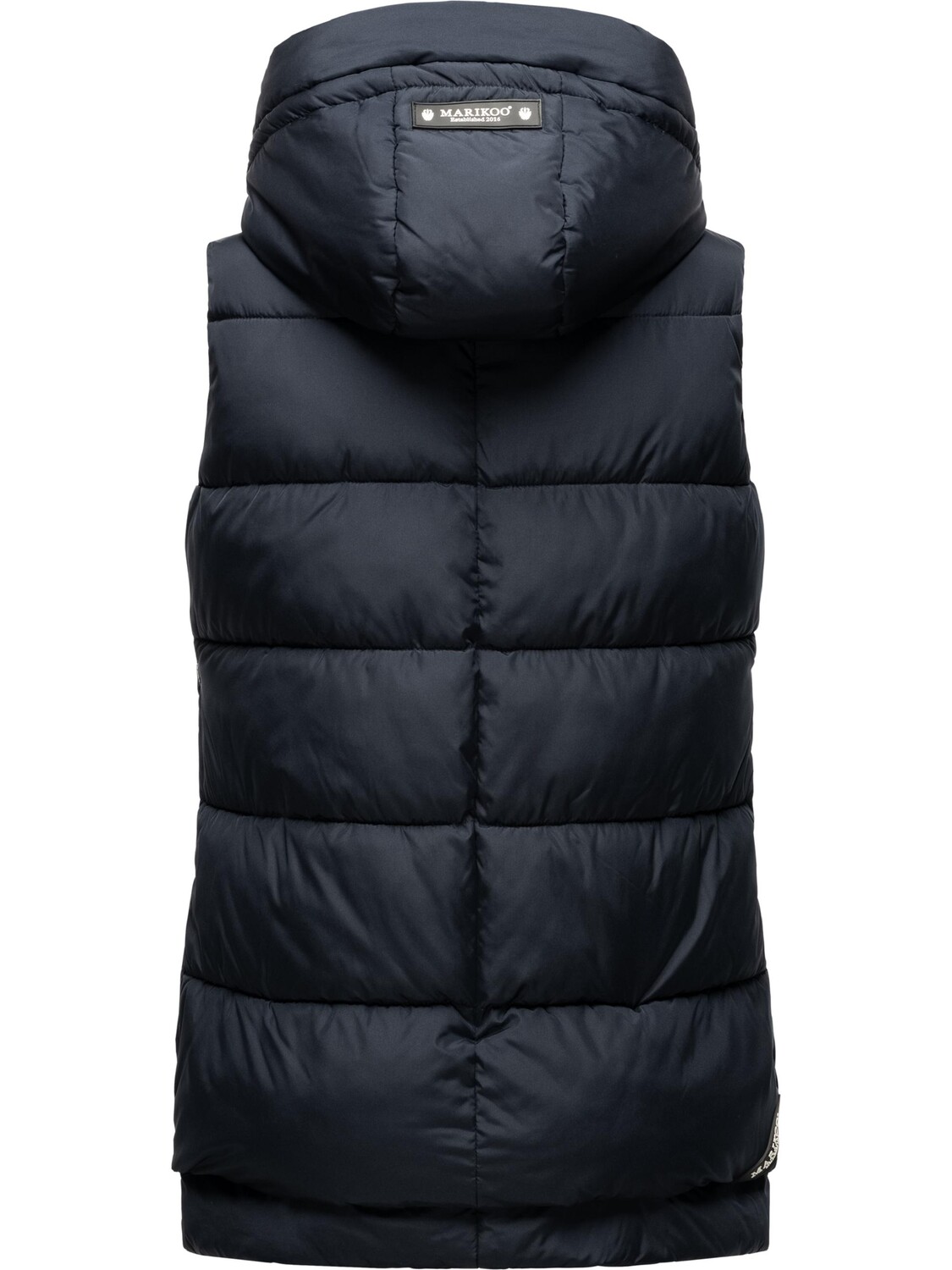 ВИД: Модный женский стеганый жилет без рукавов со сложными деталями и съемным капюшоном от Marikoo — идеально подходит для холодного сезона (осень и зима). МАТЕРИАЛ: Теплый уличный жилет из супермягкого водоотталкивающего наружного материала, с мягкой набивкой и очень удобный в носке.