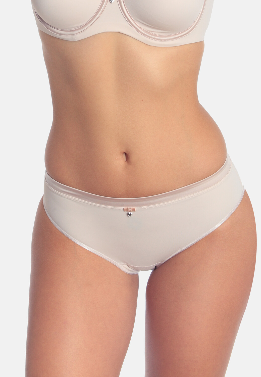 Трусики из комфортной микрофибры. Блестящая отделка на талии делает изделие еще более изысканным. Бесшовная лазерная обработка выреза на ноге не заметна даже под обтягивающей одеждой. Нежный бантик с серебряным металлическим сердечком.