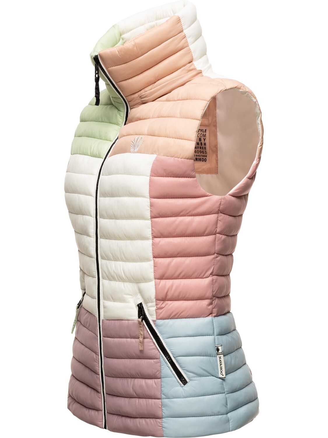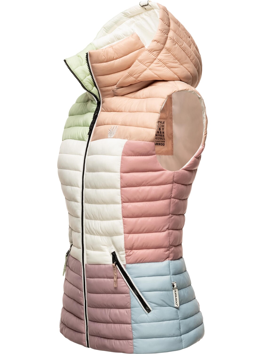 ВИД: Модный стеганый жилет без рукавов в модном стиле колор-блок со съемным капюшоном от Navahoo - идеален для переходного периода (весна/осень)