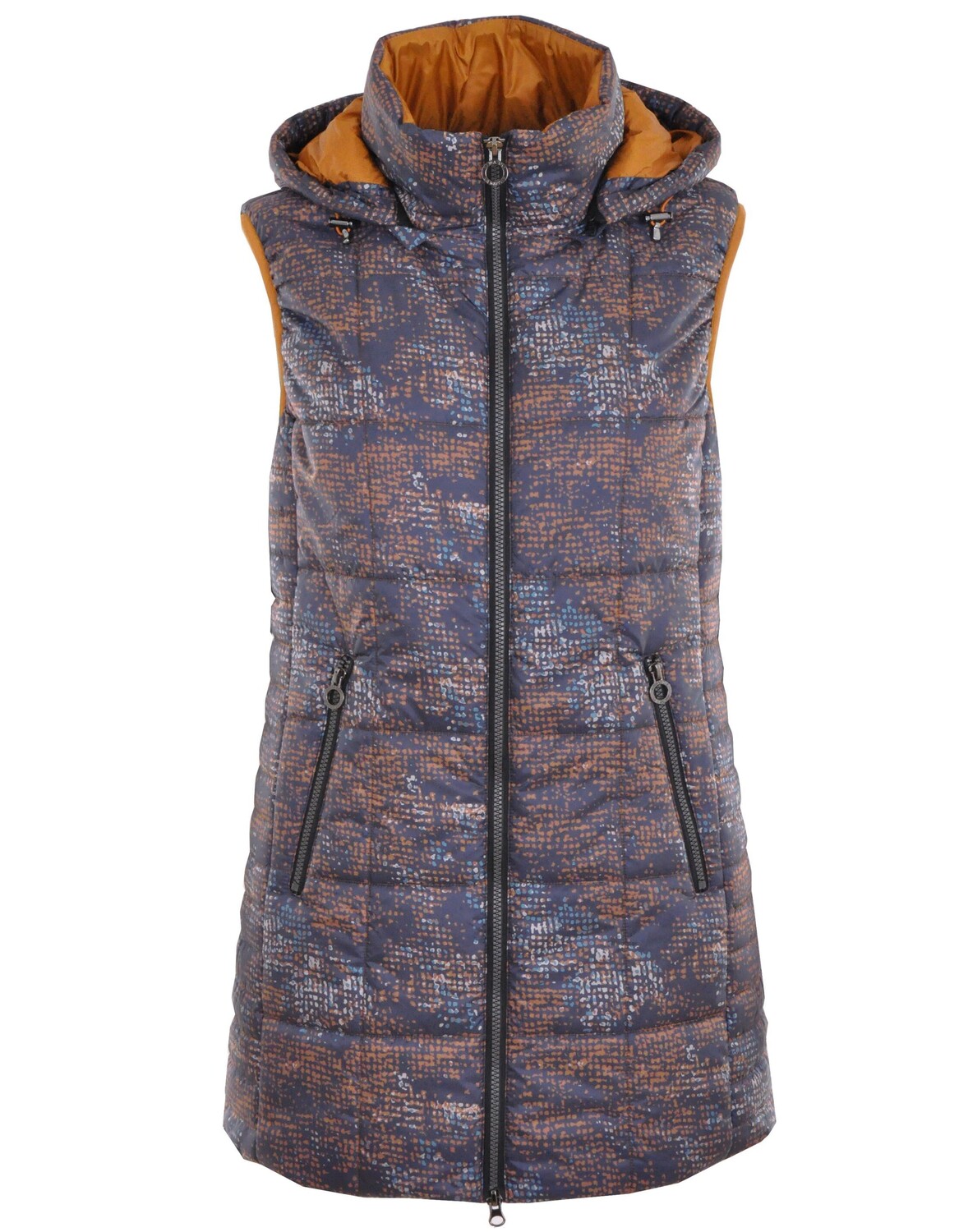 Необыкновенный дизайн для прекрасных моментов. Стеганый жилет от NAVIGAZIONE с разноцветным принтом привнесет изюминку в вашу повседневную жизнь. Длинная форма обеспечивает ощущение уюта и комфорта, а двусторонняя молния позволяет особенно удобно носить ее. Визуально он впечатляет гармонирующим по цвету капюшоном и внутренней подкладкой. Благодаря множеству дополнительных аксессуаров, таких как карманы на молнии, съемный капюшон и соответствующий шнур, это настоящий универсал. Незаменима как вишенка на торте для вашего опрятного образа!