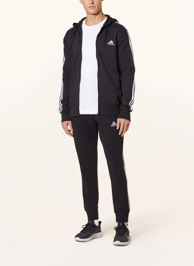 Посадка согласно производителю: Regular Fit. Коническая ножка. Эластичный пояс со шнурком. Боковые карманы. Манжеты на концах ног. Французская махра. 3-полосный дизайн. Вышивка логотипа. Чистое качество хлопка