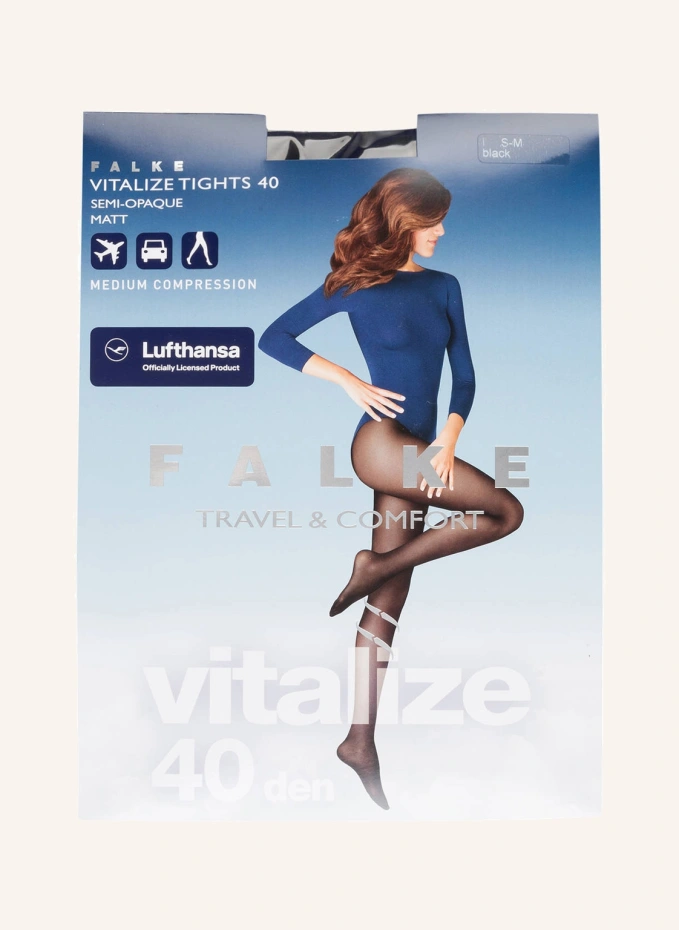 40 ден. Эластичный пояс. Пояс без давления и не скручивается для максимального комфорта. Носок с мягким швом. Матовый. Активная стимуляция и поддержка кровообращения посредством определенной компрессии. Средняя компрессия. Идеально подходит для коротких поездок, а также для сидения, стояния и прогулок. Формирующий эффект и превосходный комфорт при ношении. Ровный узор стежка благодаря технологии 3D вязания. Путешествуйте и комфорт с FALKE и Lufthansa