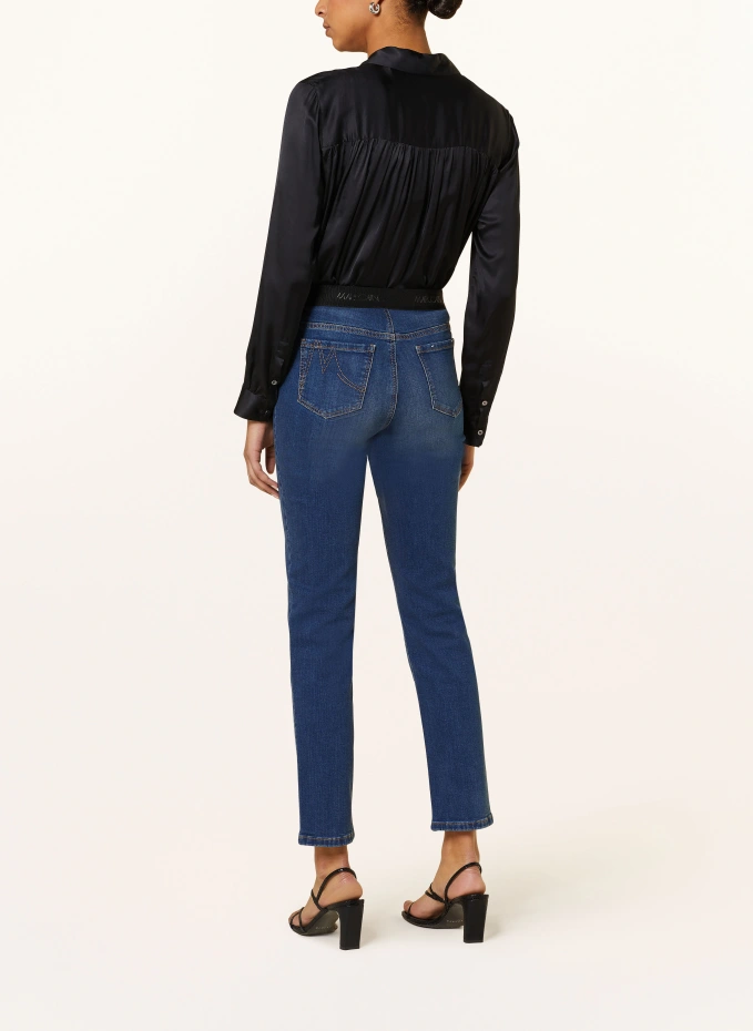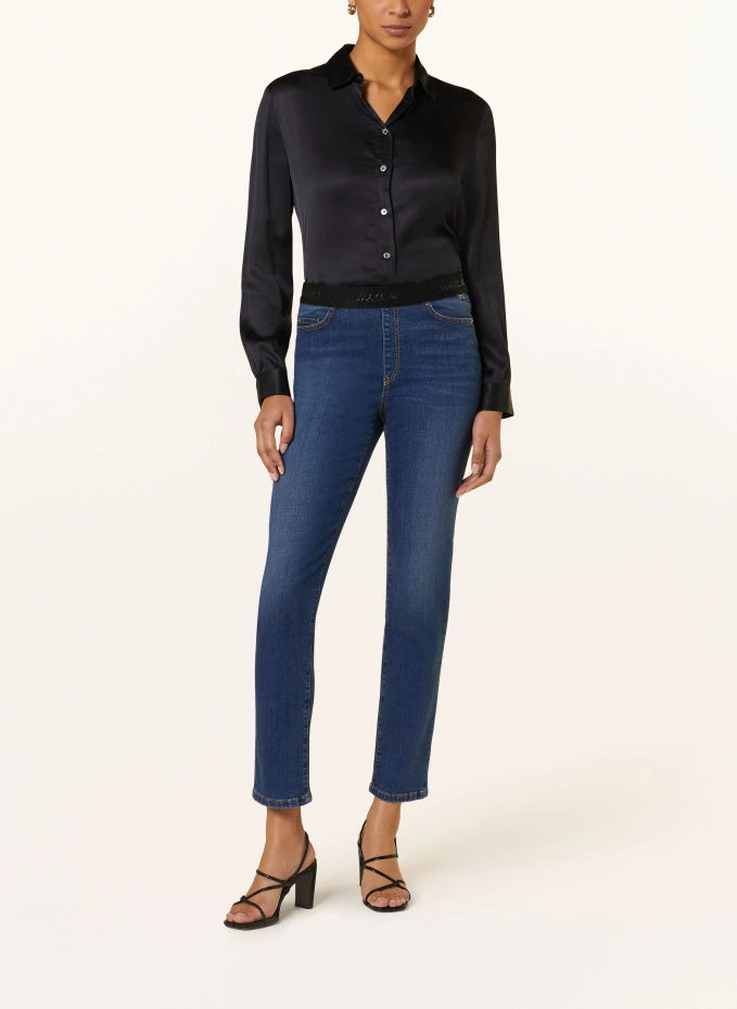 Нормальная высота талии. Коническая ножка. Эластичный пояс. 5-карманный стиль. Надпись на поясе. Визуально сиденье складывается. Эластичный хлопок, качество.