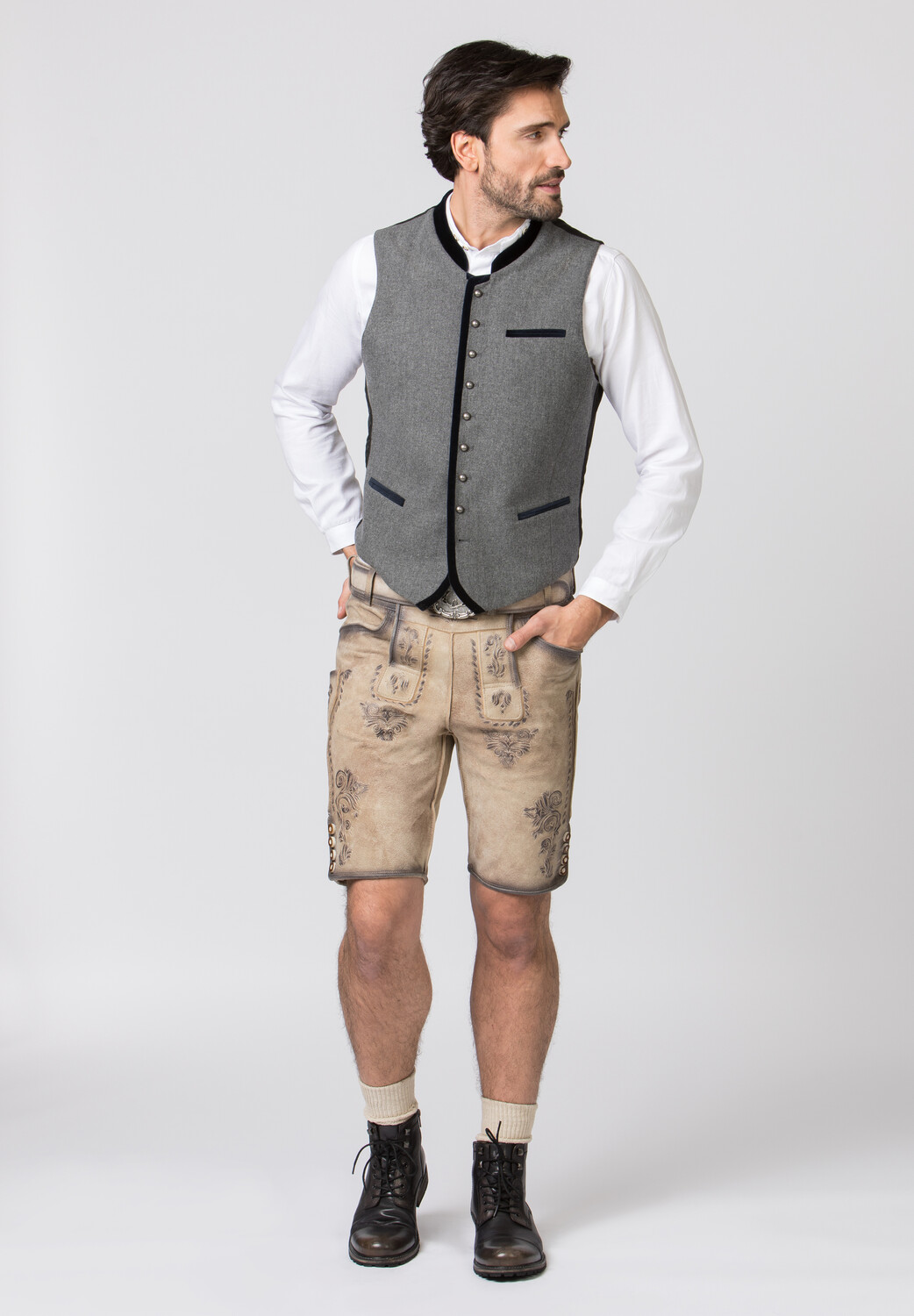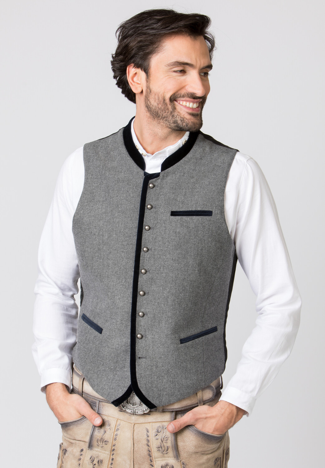 Традиционный жилет Алонсо от Stockerpoint Classics. Классический жилет из высококачественной крапчатой ткани лодэн является классикой среди традиционных жилетов. Воротник-стойка выполнен из тонкого хлопкового бархата и характеризует неповторимый стиль. Широкая окантовка в цвете подчеркивает эффектный дизайн. Классический прямой крой гарантирует очень хорошую и удобную посадку. Спинка выполнена из эксклюзивного атласа в черную полоску и регулируется с помощью планки. Традиционные шариковые пуговицы из старинного серебра искусно дополняют элегантный внешний вид. Традиционный жилет является идеальным сочетанием с нашими традиционными рубашками и неотъемлемой частью классического традиционного костюма.