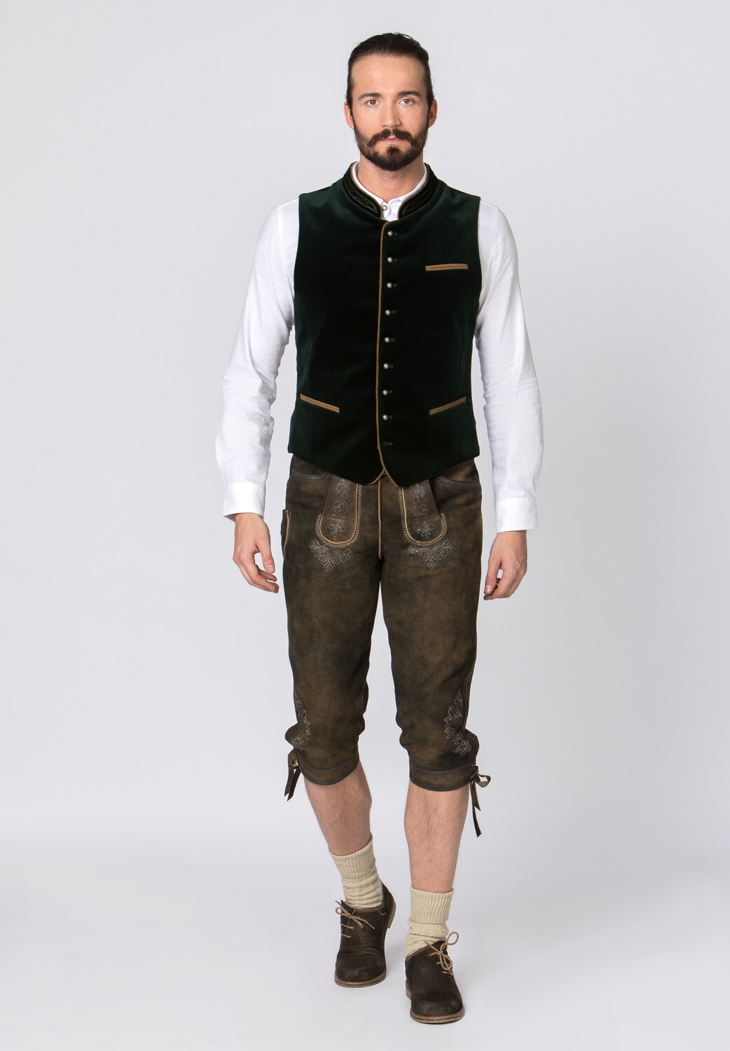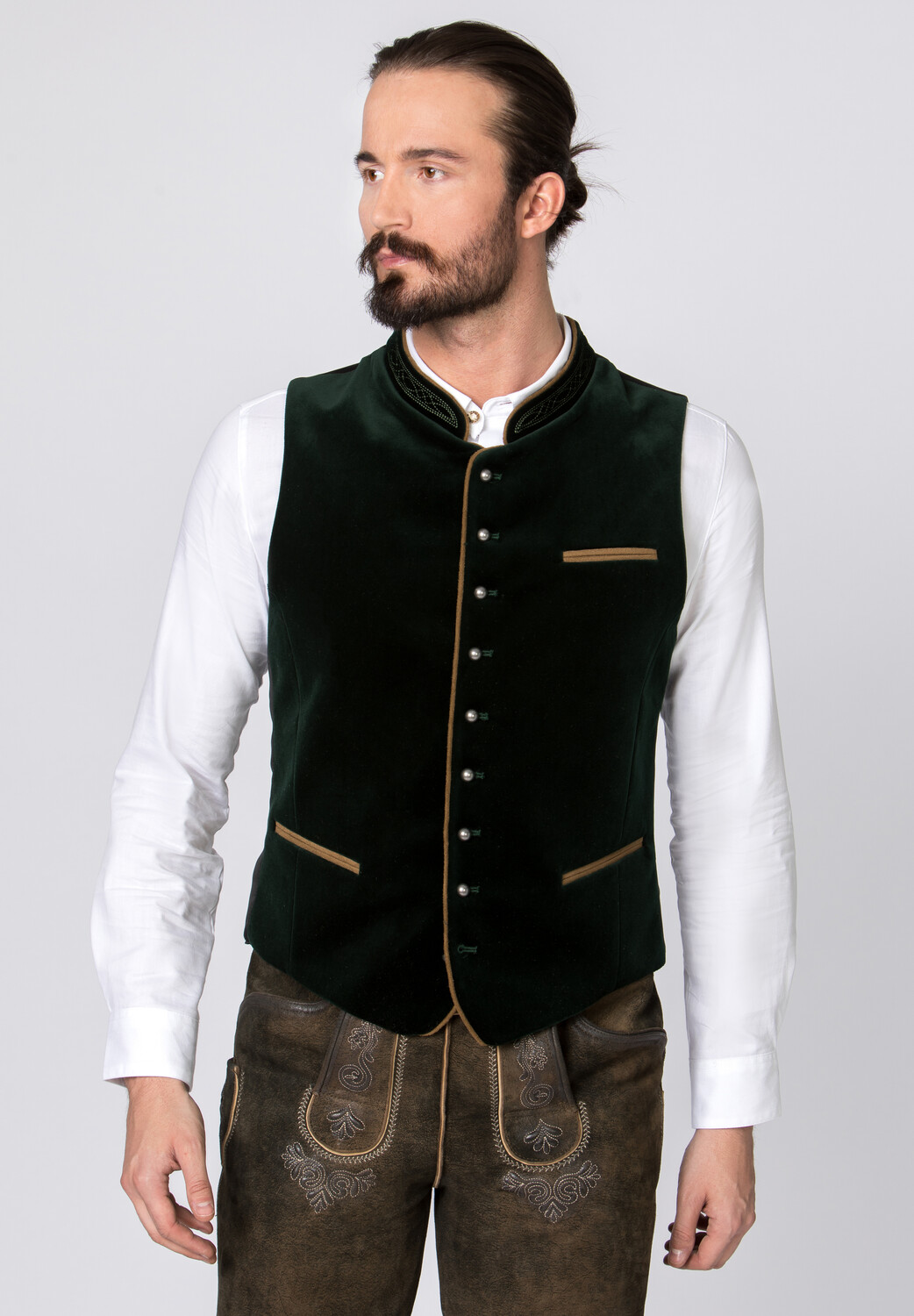 Традиционный жилет Рикардо от Stockerpoint Classics. Классический жилет из высококачественного хлопкового бархата – это классика среди традиционных жилетов. Классический прямой крой гарантирует очень хорошую и удобную посадку. Подходящий по цвету воротник-стойка и окантовка подчеркивают традиционный дизайн. Спинка выполнена из черного атласа и регулируется с помощью планки. Шариковые пуговицы из состаренного серебра искусно дополняют элегантный внешний вид. Традиционный жилет является идеальным дополнением к нашим традиционным рубашкам и ледерхозенам.