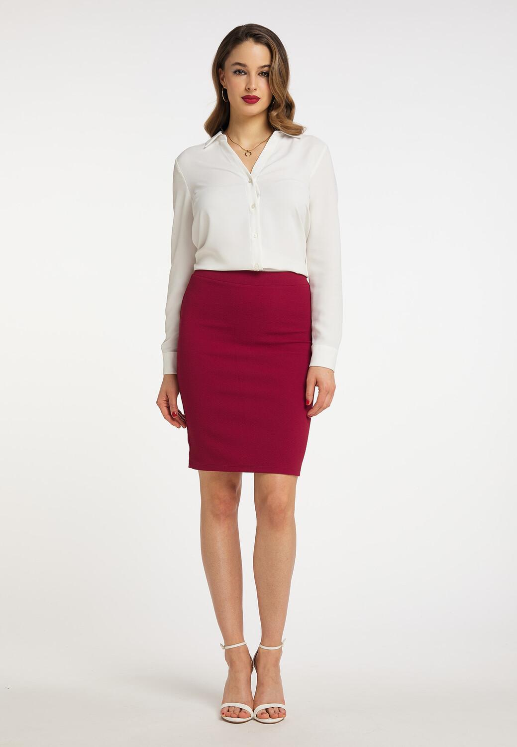 Юбка-карандаш Faina впечатляет своим облегающим кроем, элегантно и эффектно подчеркивающим женский силуэт. Модель облегающего кроя, выполненная из структурированного эластичного материала, впечатляет своим однотонным внешним видом и золотистой молнией на задней части юбки. Особое внимание уделяется подвеске на молнии, которая украшена крупным стразом.