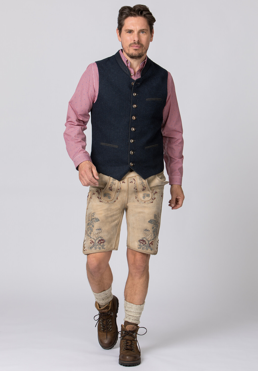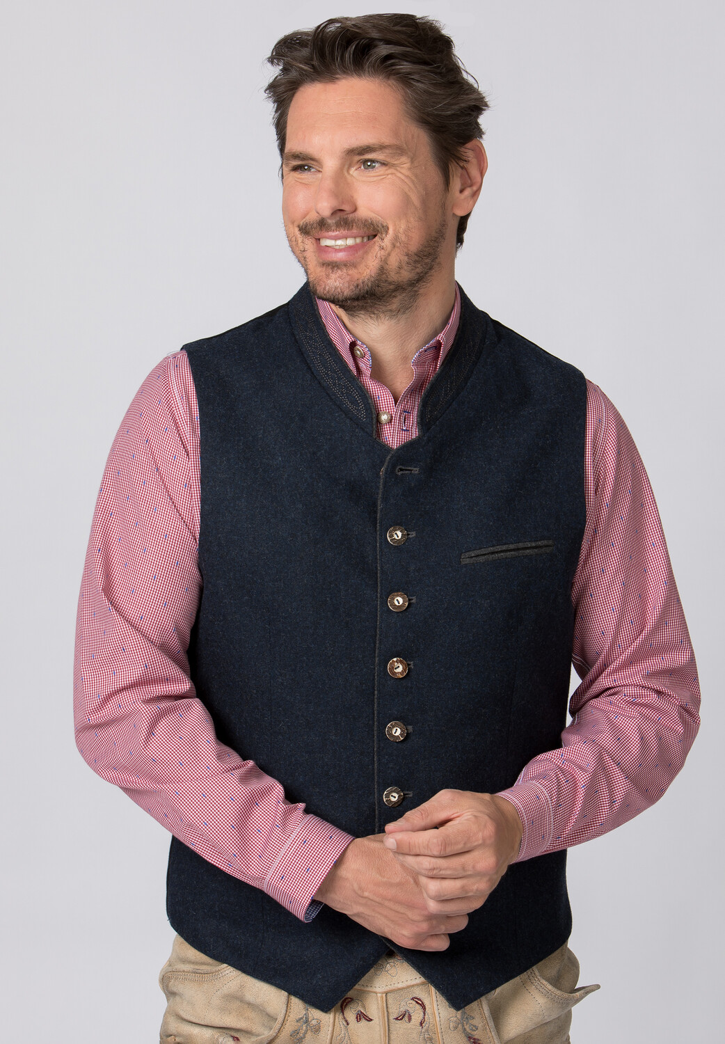 Традиционный жилет Sirius от Stockerpoint Classics. Традиционный жилет изготовлен из высококачественной крапчатой ткани лоден. Классический прямой крой гарантирует очень хорошую и удобную посадку. Гармонично подобранный вышитый воротник-стойка и окантовка подчеркивают особый дизайн. Спинка выполнена из эксклюзивной хлопчатобумажной ткани черного цвета и регулируется с помощью планки. Роговые пуговицы в деревенском стиле искусно дополняют элегантный внешний вид. Традиционный жилет является идеальным сочетанием наших кожаных брюк и традиционных жилетов и характеризует классический традиционный образ.