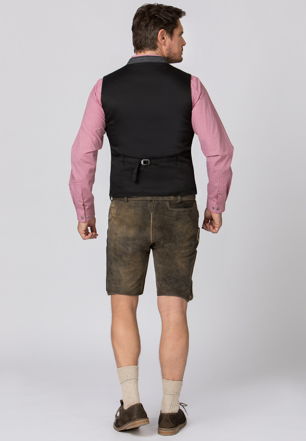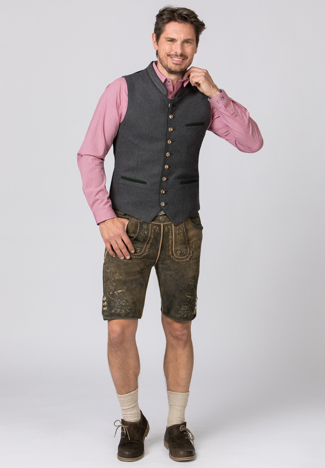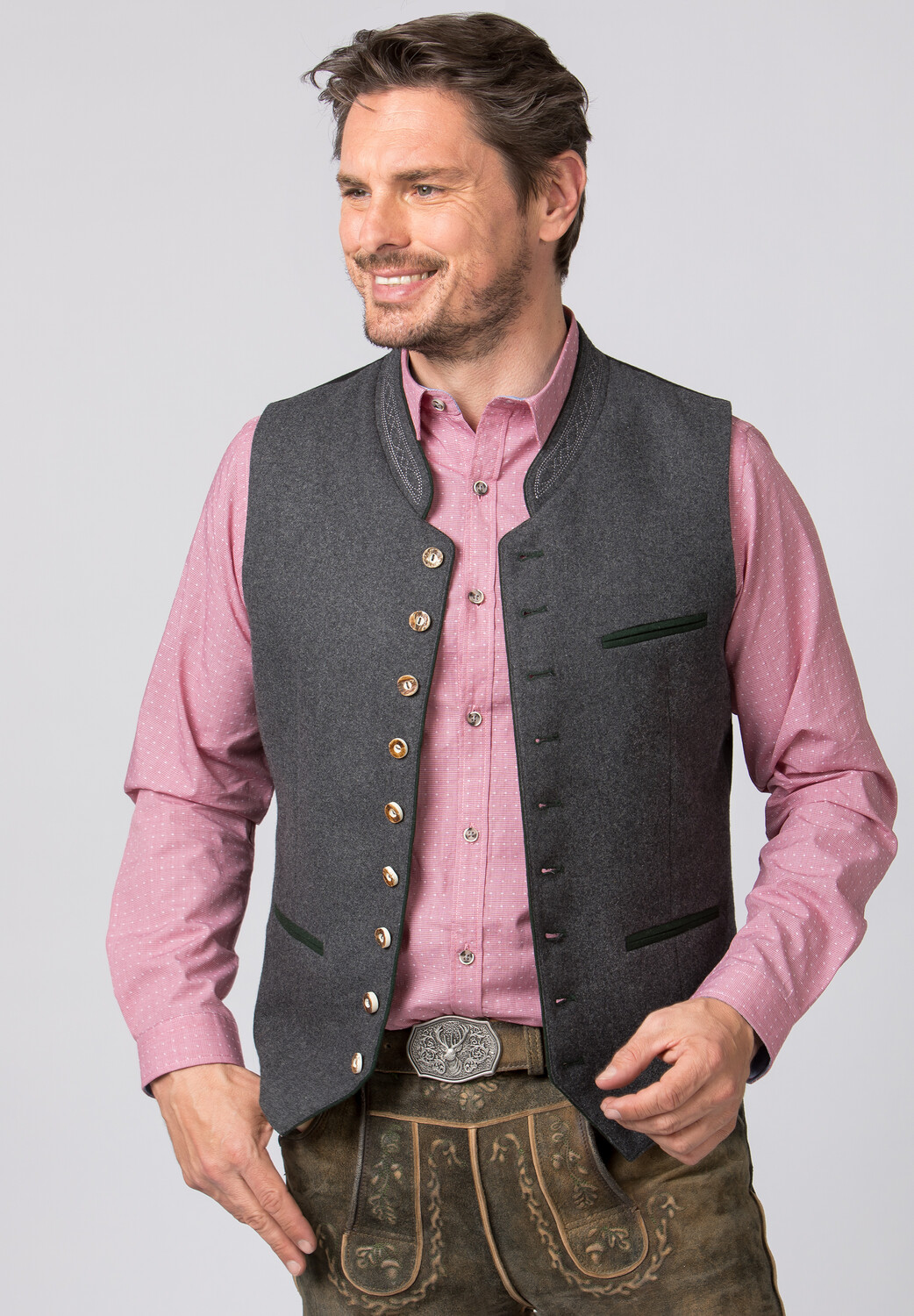 Традиционный жилет Sirius от Stockerpoint Classics. Традиционный жилет изготовлен из высококачественной крапчатой ткани лоден. Классический прямой крой гарантирует очень хорошую и удобную посадку. Гармонично подобранный вышитый воротник-стойка и окантовка подчеркивают особый дизайн. Спинка выполнена из эксклюзивной хлопчатобумажной ткани черного цвета и регулируется с помощью планки. Роговые пуговицы в деревенском стиле искусно дополняют элегантный внешний вид. Традиционный жилет является идеальным сочетанием наших кожаных брюк и традиционных жилетов и характеризует классический традиционный образ.