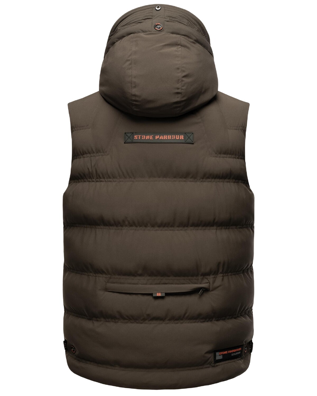 ВИД: Слегка стеганый мужской жилет с большим съемным капюшоном и стильными, частично контрастными деталями - настоящий акцент!