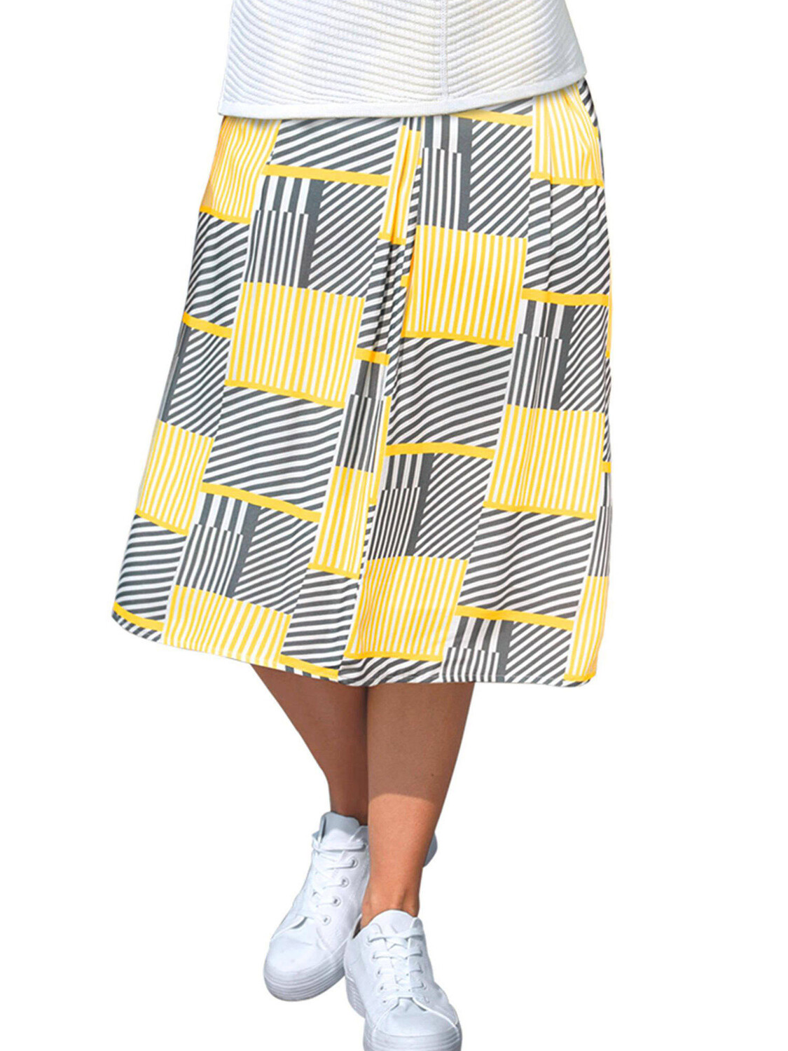 Юбка до колена GOLDNER, цвет gelb/grau/gemustert