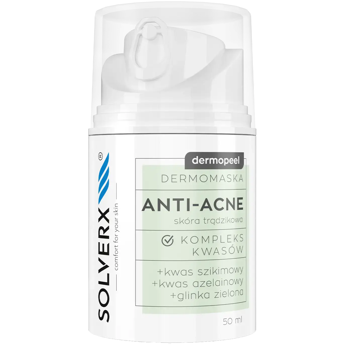 Дермомаска предназначена для ухода за кожей с угревой сыпью. Рекомендуется как при обыкновенных угрях, так и при розацеа. Его действие основано на инновационном сочетании комплекса кислот со свойствами глины.