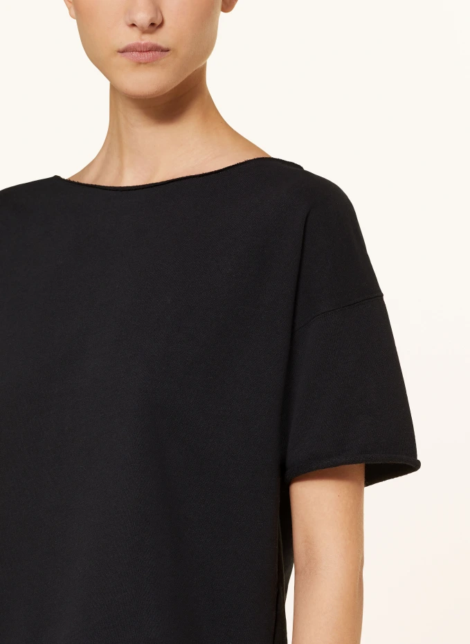 Вырез коробчатый. Круглый вырез. Короткие рукава. Перерез плеч. Прокатные градусы. Мягкая отделка внутри
