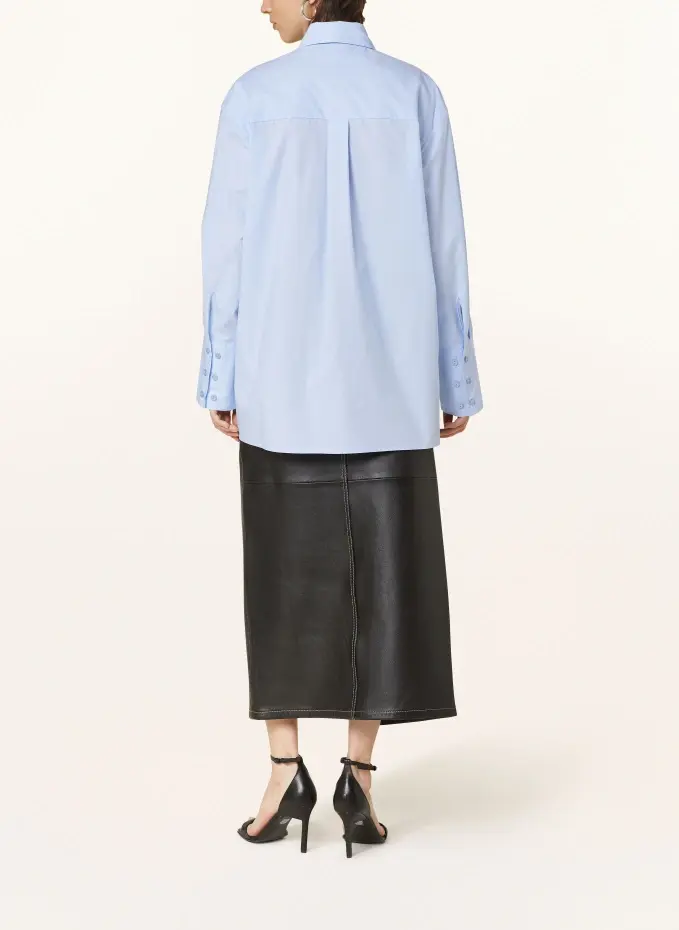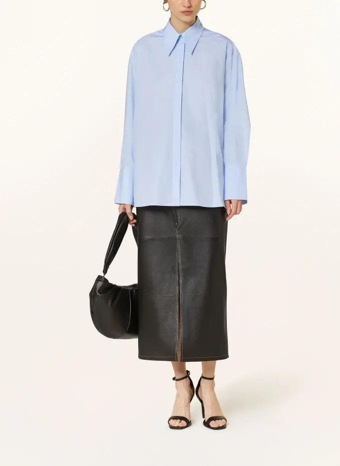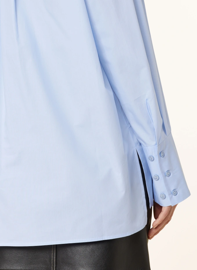 Прямого покроя. Воротник рубашки. Складка на спине. Закрывается на потайную планку на пуговицах во всю длину. Широкая регулируемая манжета на трех пуговицах. Боковые стороны с прорезями. Слегка удлиненная задняя часть. Чистый хлопок