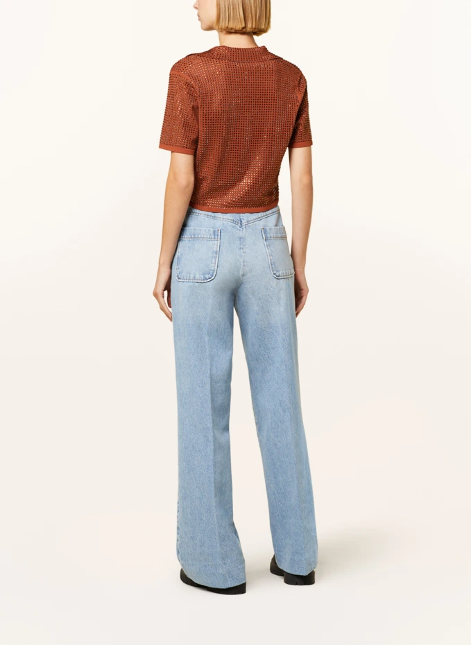 Высокая талия. Широкая, прямая нога. Застежка-молния. Модель с 4 карманами. Прессованные складки. Оптические движения морщин. Твердое ощущение. Чистый хлопок