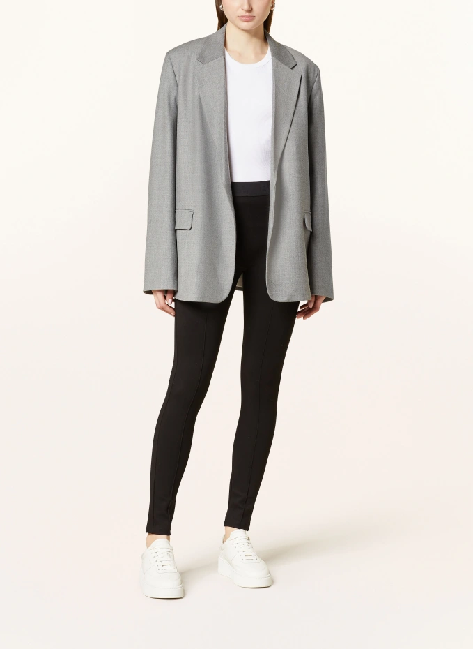 Узкая ножка. Эластичный пояс. Разделительные швы спереди. Детали этикетки на поясе. Эластичное качество