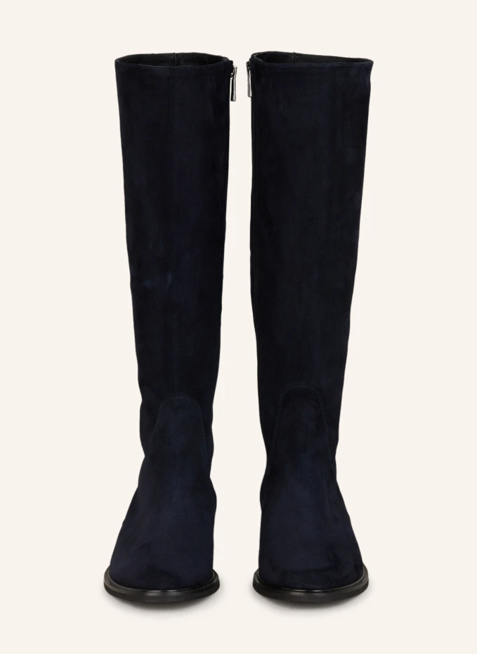 Замша. Боковая молния. Носок миндалевидной формы. Блочный каблук с имитацией фанеры. Сделано в Италии