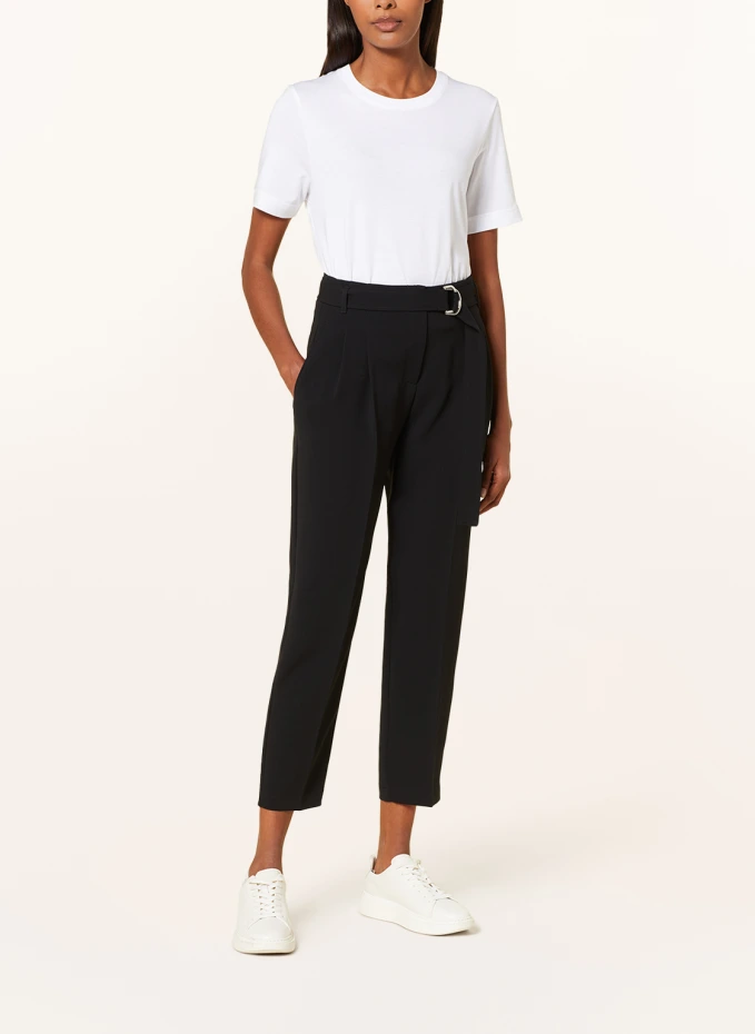 Из линейки BOSS Black. Высокая талия. Прямая нога. Закрывается на крючок и молнию. Складки, подчеркивающие фигуру. Боковые карманы. Декоративные карманы с кантом. Со съемным поясом и петлями для ремня. Качество плавности