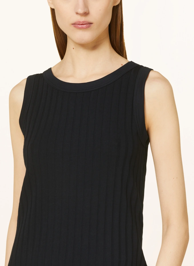 Прямого покроя. Круглый вырез. Широкая ребристая структура. Эластичная обработка хлопка
