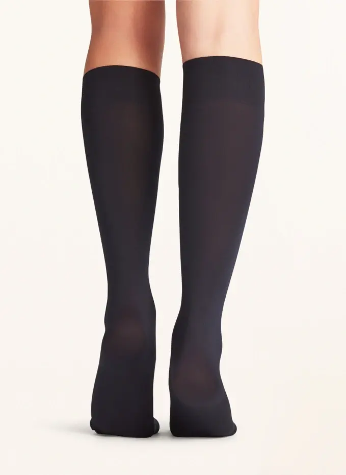 40 ден. Полупрозрачная оптика. Ребристые манжеты. Эластичное качество. Улучшенный, ровный рисунок строчки. Носок с тончайшим мягким швом.