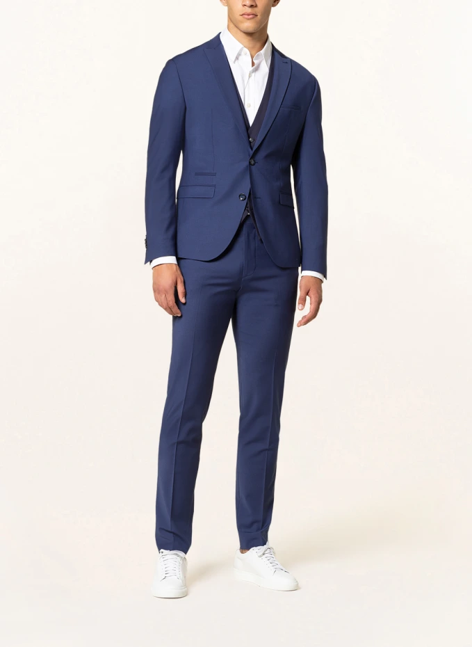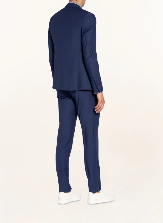Посадка по данным производителя: Super Slim Fit. Заостренные лацканы с петлицей. Подворотник с фетровой отделкой. Наплечники. Однобортный/на двух пуговицах. Прорезной карман на уровне груди. Поцелуйные пуговицы на концах рукавов. Карманы с клапанами спереди и карман для мелочи. Два боковых разреза. Внутренние карманы. Обработка на подкладке. Гладкая внутренняя подкладка. Поясные швы спереди и сзади. Эластичная обработка. С натуральной шерстью