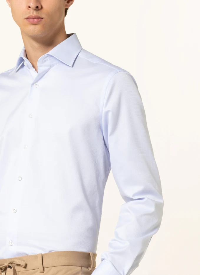 Посадка по данным производителя: Индивидуальная посадка. Новый ошейник Кент. Широкая кокетка сзади. Гладкая планка с пуговицами. Манжета на одну пуговицу. Тонкая структура переплетения. Хлопок премиум-класса Full Twist.