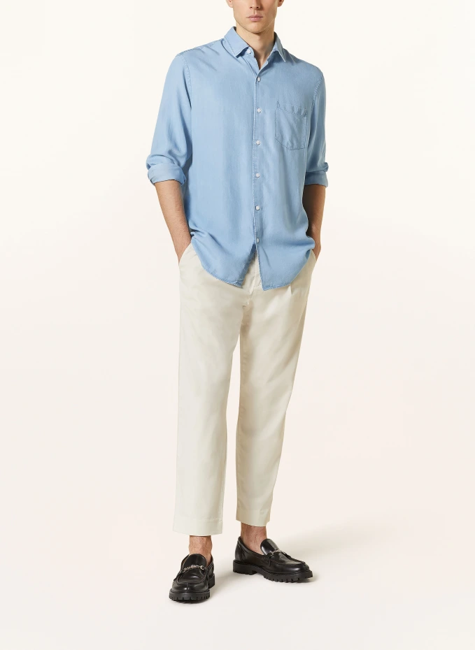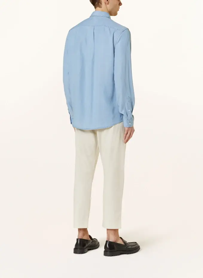 Посадка: Комфортная посадка. Складка на спине. Кентский воротник. Широкая кокетка сзади. Нагрудный карман. Гладкая планка с пуговицами. Манжета на одну пуговицу. Джинсовый образ