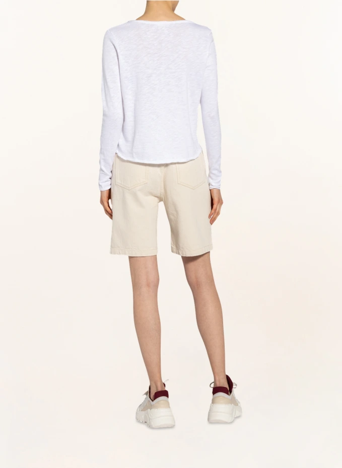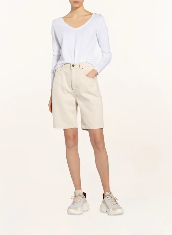 Прямого покроя. Вырез горловины V-образный. Ребристые манжеты и подол. Внутри френч терри. Надпись на этикетке спереди. Нашивка с логотипом на руке. Чистый хлопок